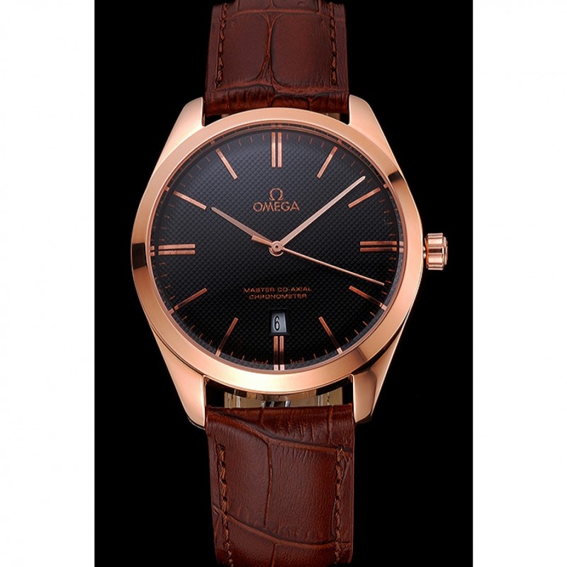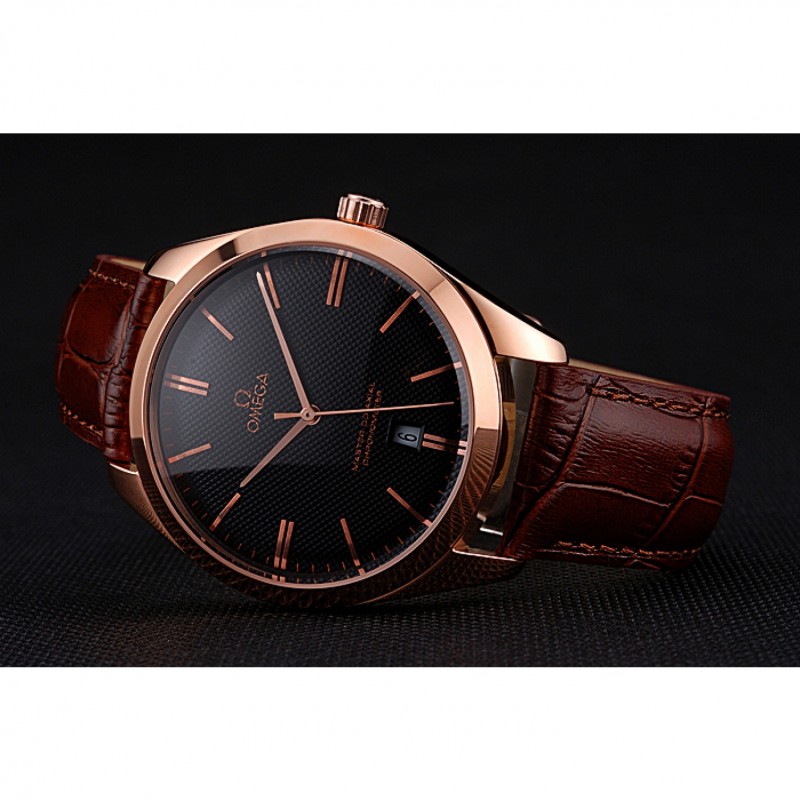 pulsera: logo y el calor Omega en relieve correa de piel de cocodrilo marrón con Omega logotipo de 18k grabado de oro rosa plateado gancho de cierre de