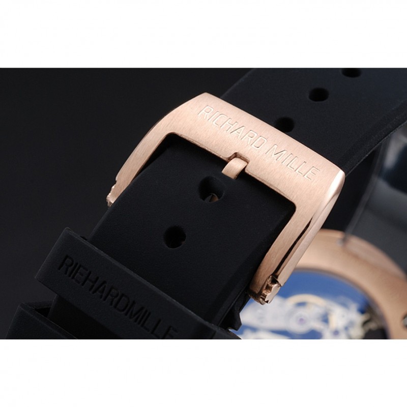 pulsera: correa de caucho negro en relieve calor Richard Mille con Richard Mille grabado 18K rose-chapado en oro de gancho hebilla de cierre