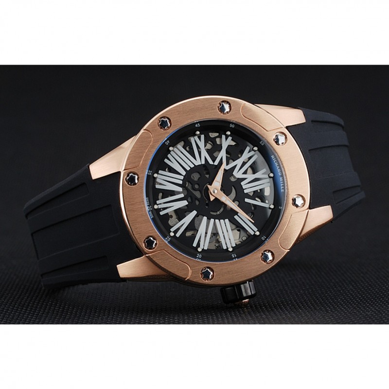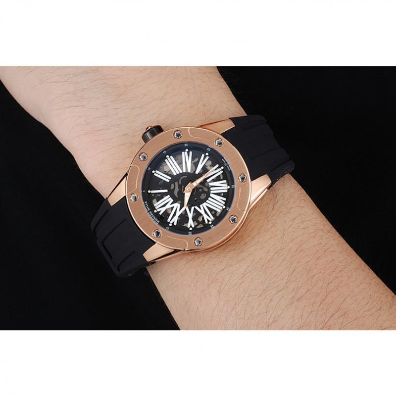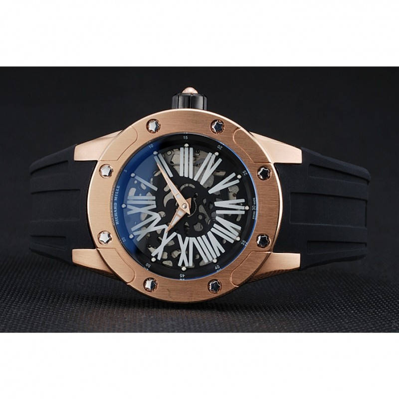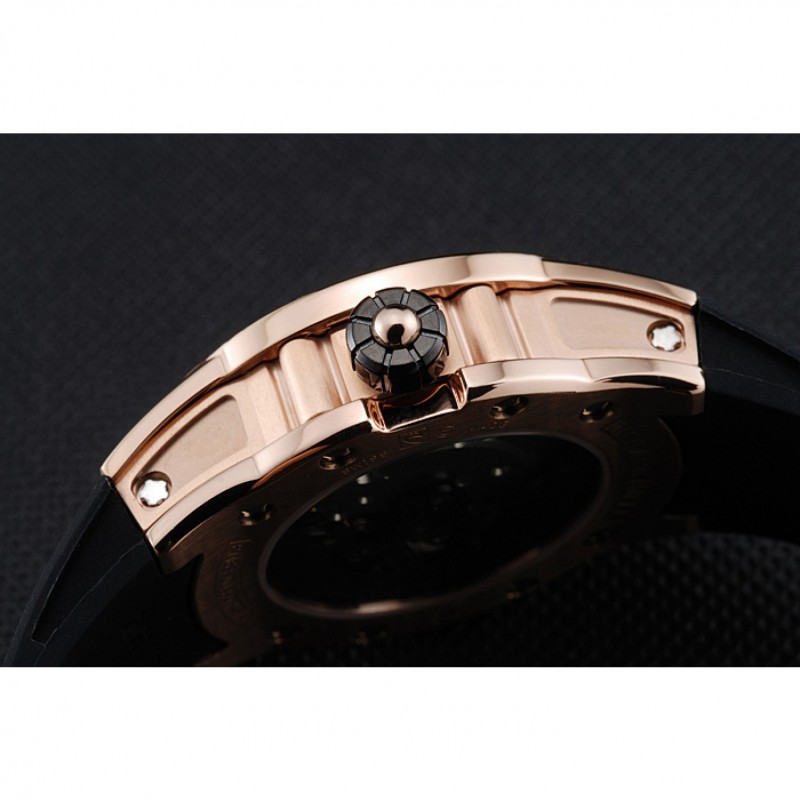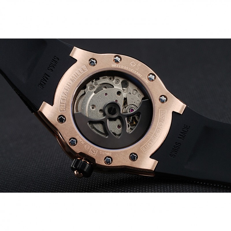 Volver: Richard Mille grabado rosa de 18 quilates chapado en oro atornillado atrás con la mecánica-revelador transparentes centro