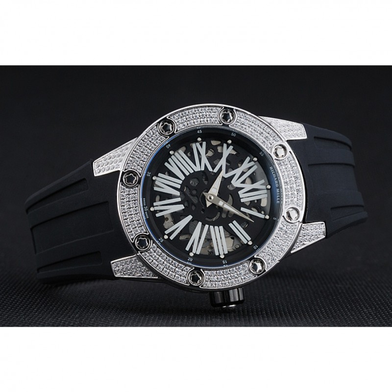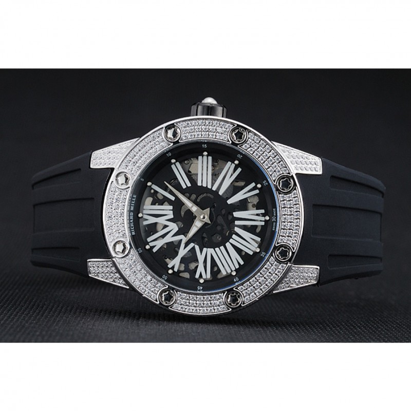Richard Mille RM 033 pulsera extra plana Automática la caja del diamante de goma Negro 1454195