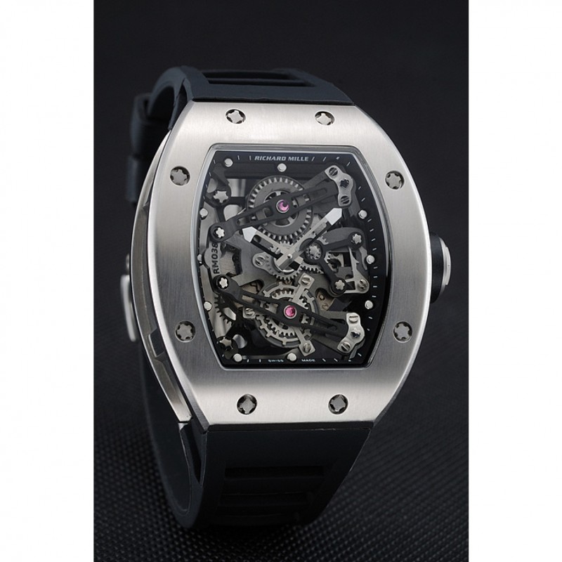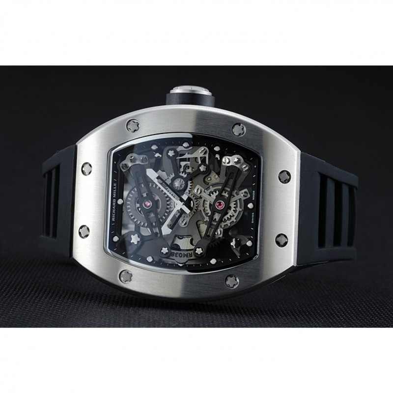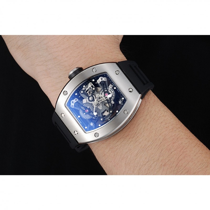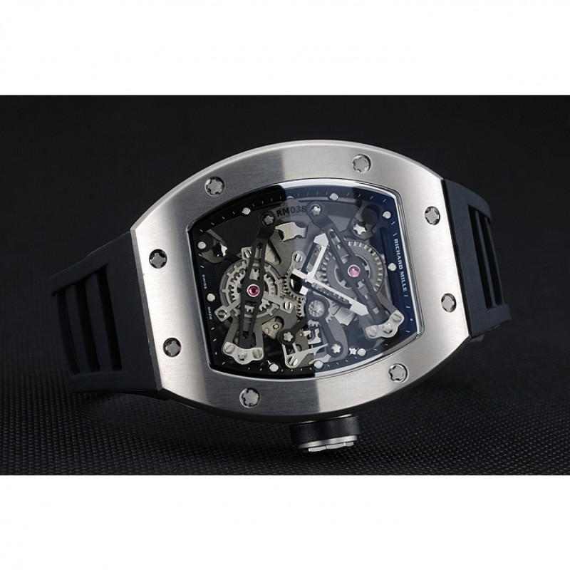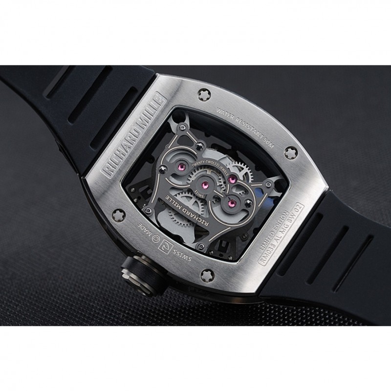 Volver: Richard Mille grabado acero inoxidable cepillado atornillado hacia atrás con transparente centro mecánica-reveladoras