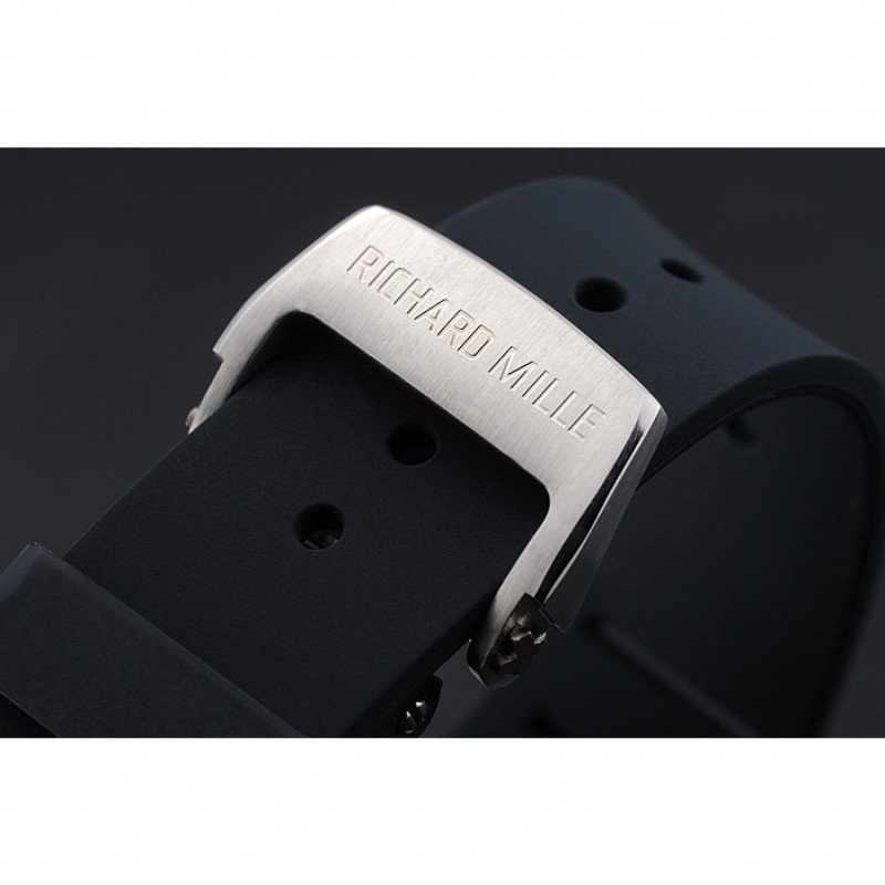 pulsera: correa de caucho negro en relieve calor Richard Mille con Richard Mille grabado cepillado gancho de acero inoxidable corchete -buckle