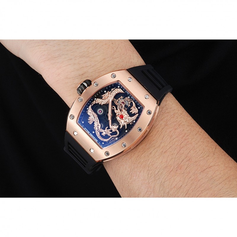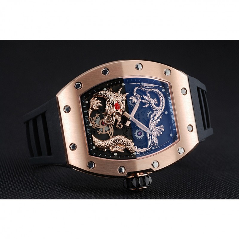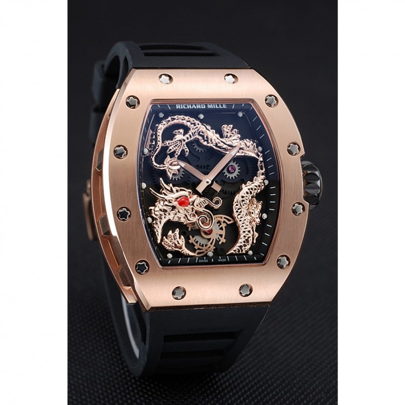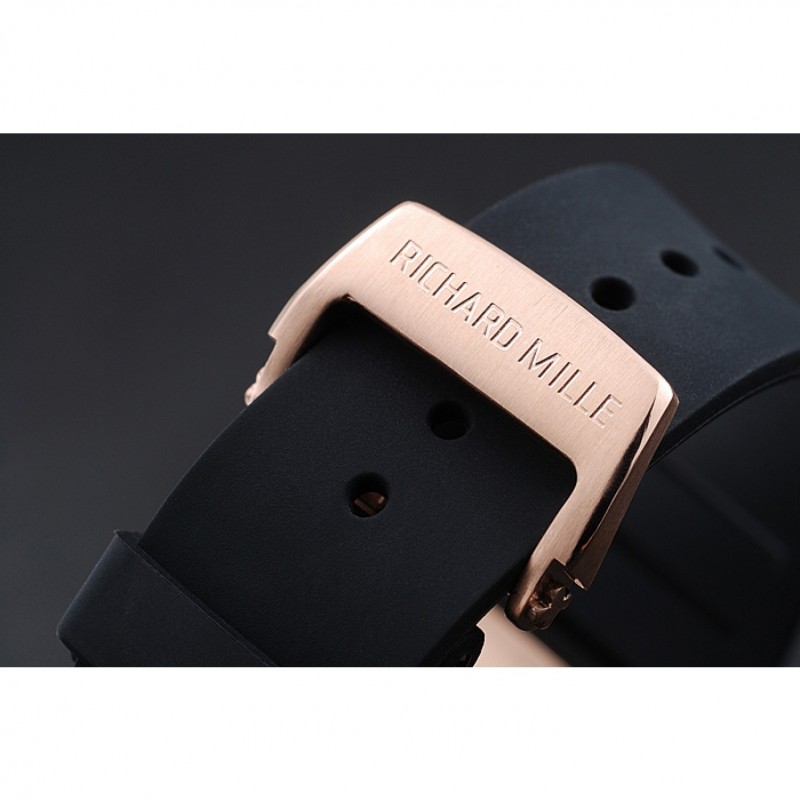 pulsera: correa de caucho negro en relieve calor Richard Mille con Richard Mille grabado 18K rose-chapado en oro de gancho hebilla de cierre