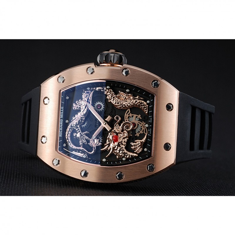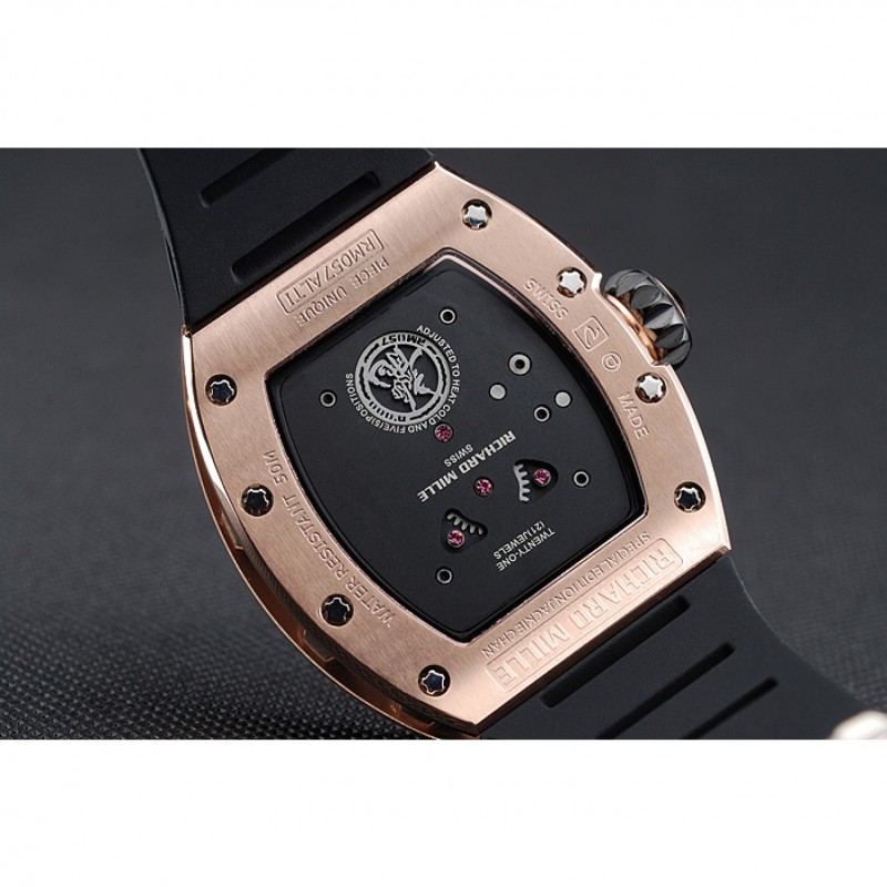 Volver: Richard Mille grabado rosa de 18 quilates chapado en oro atornillado atrás con el centro de cerámica negro inscrito