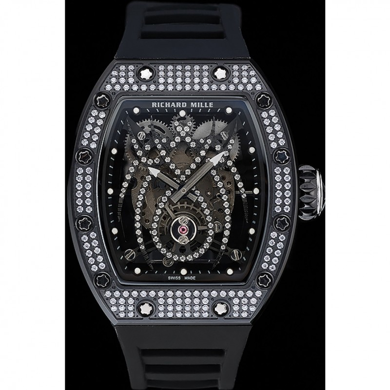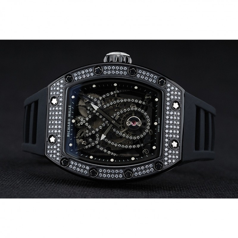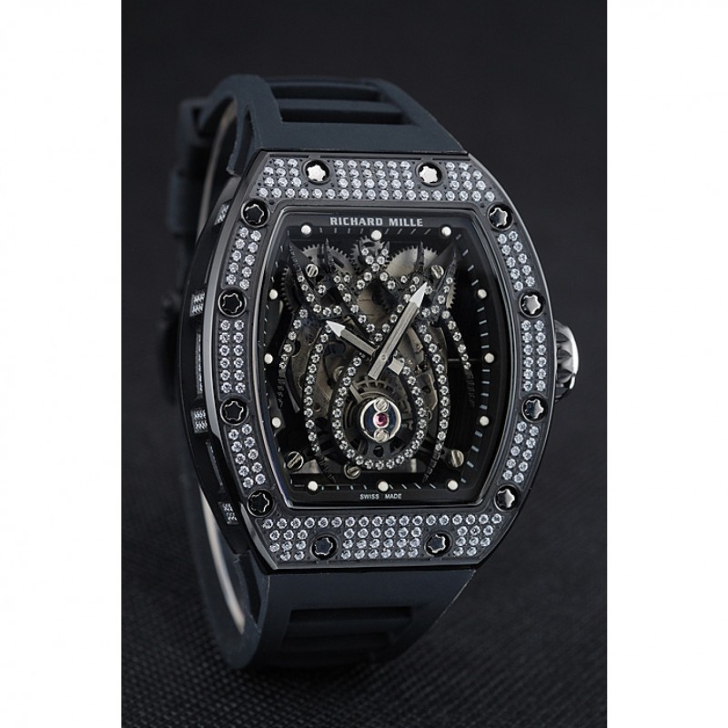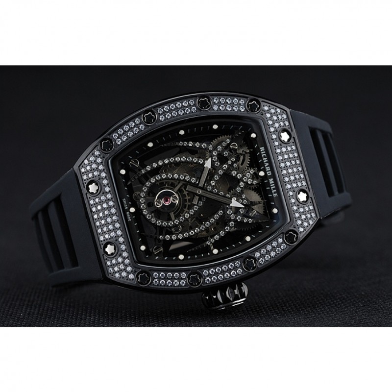 pulsera: Richard correa de caucho negro en relieve calor Mille con Richard Mille grabado ion-plateado broche de gancho hebilla