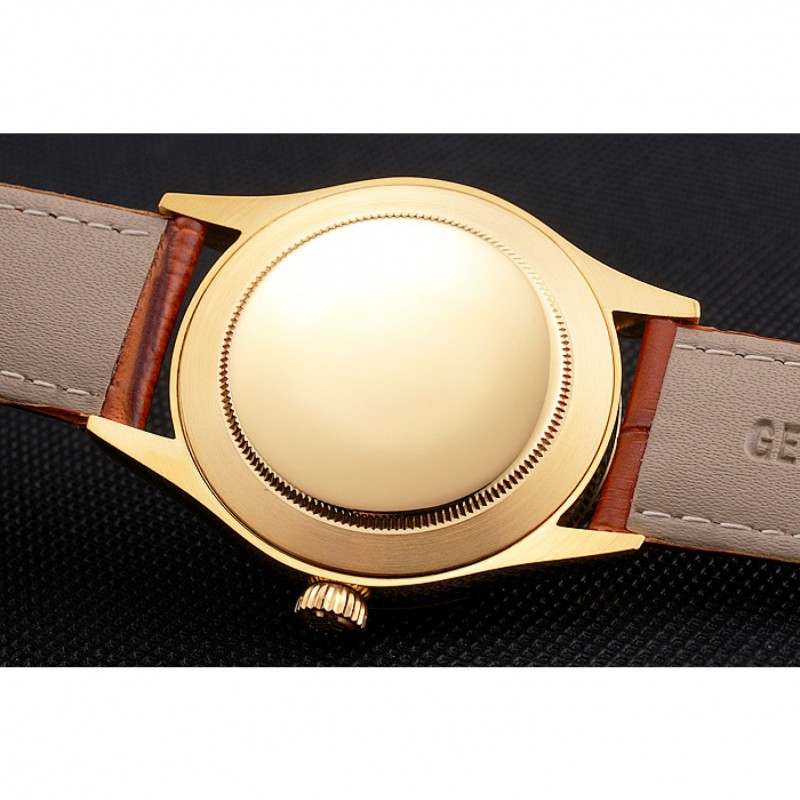 pulsera:correa de piel de cocodrilo/Rolex y el logotipo de calor en relieve de color marrón claro con logotipo de Rolex tallada oro amarillo de 18K plateado gancho hebilla de cierre