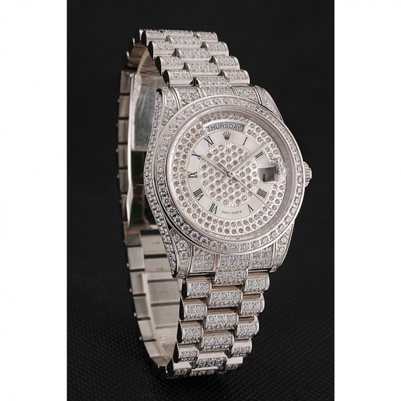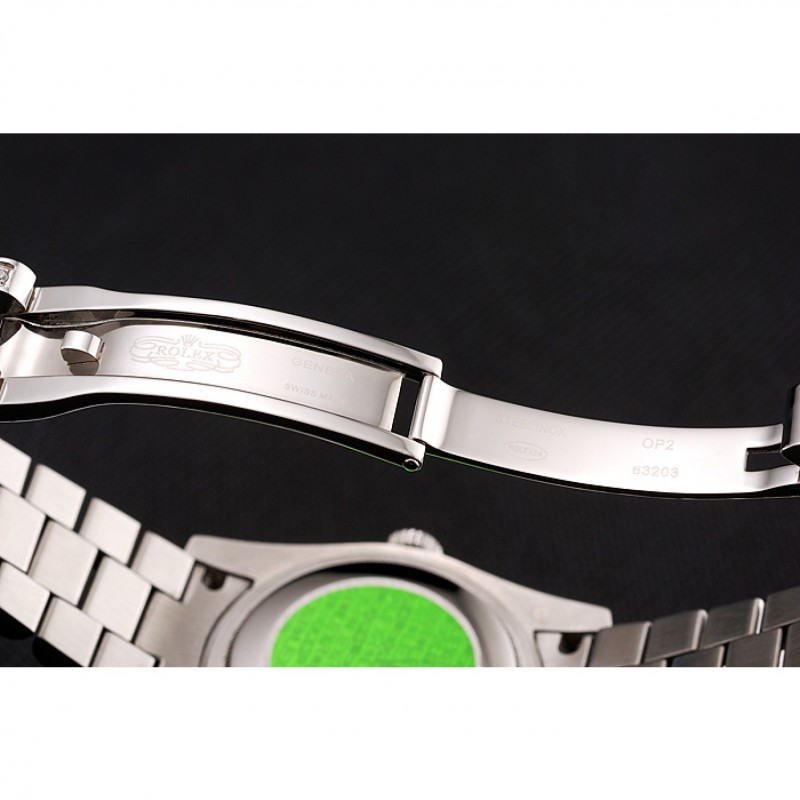 pulsera: diamante incrustaciones de acero stainess pulida brazalete de eslabones con el logotipo de Rolex tallado cierre oculto