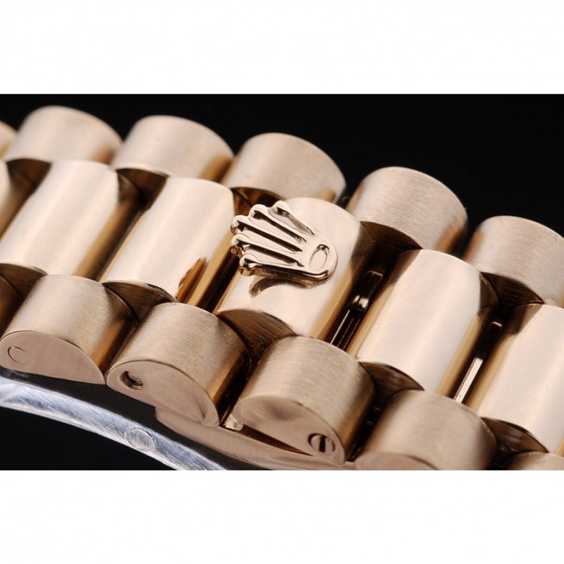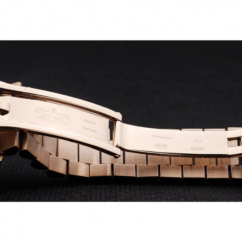 pulsera: 18k oro amarillo plateado brazalete de eslabones de acero inoxidable con grabado Rolex cierre oculto que muestra el logotipo de Rolex