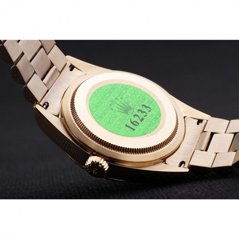 Volver: 18k oro amarillo plateado caja de acero inoxidable de empuje en la parte trasera con el logotipo verde sello Rolex