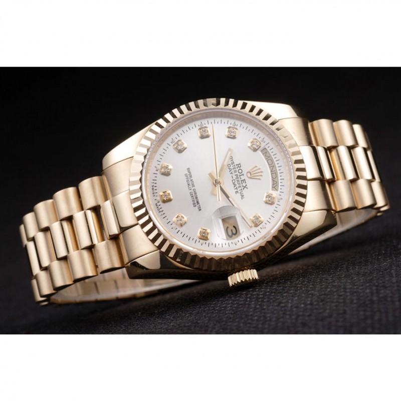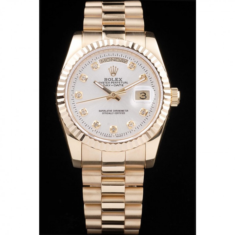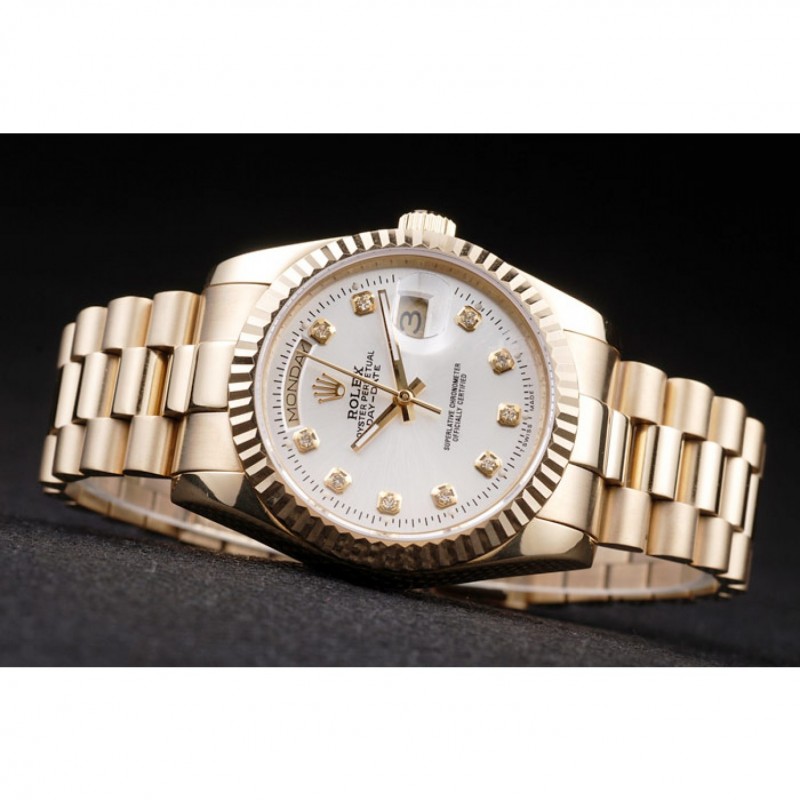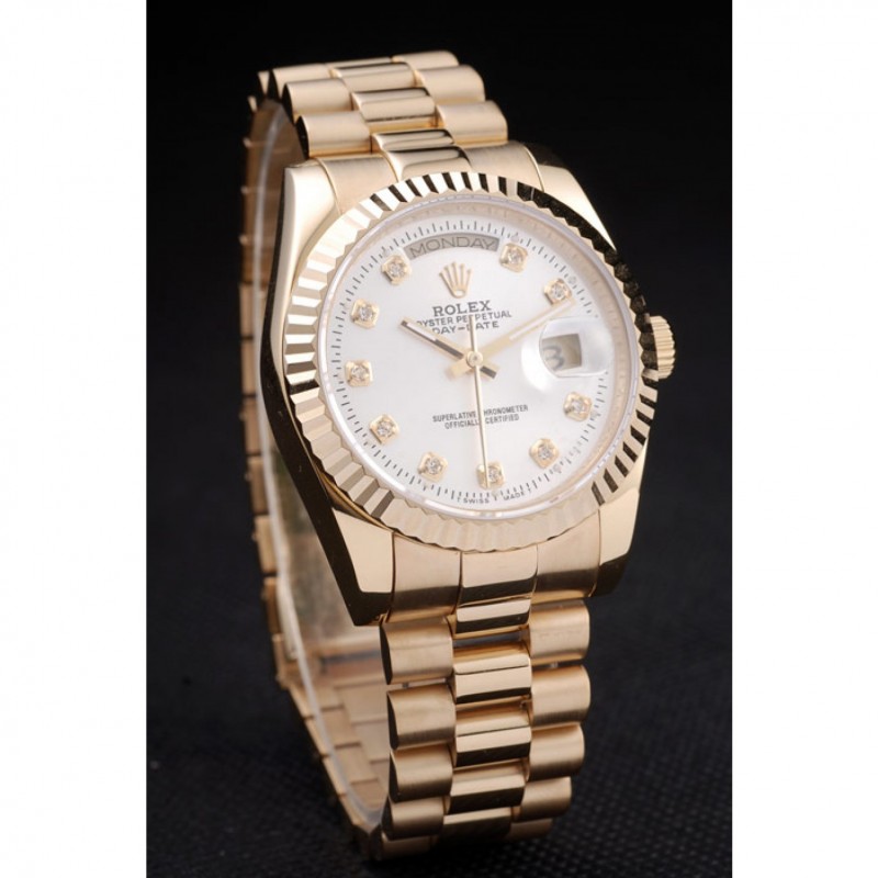 Volver: Pulsar en oro amarillo de 18K de vuelta con etiqueta Rolex verde y marcas