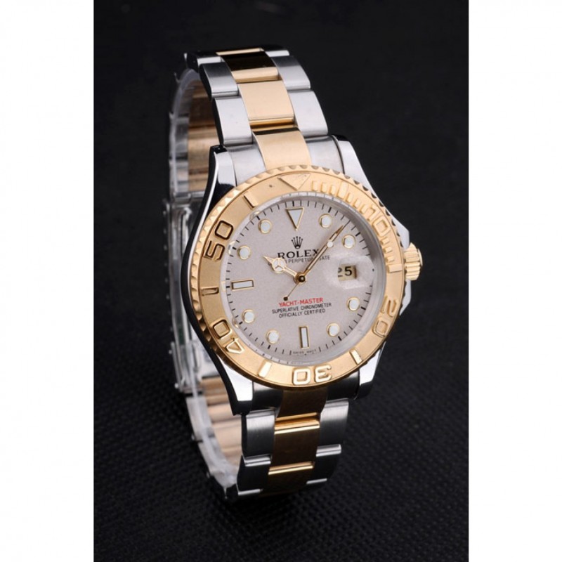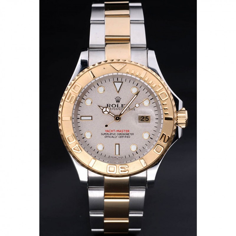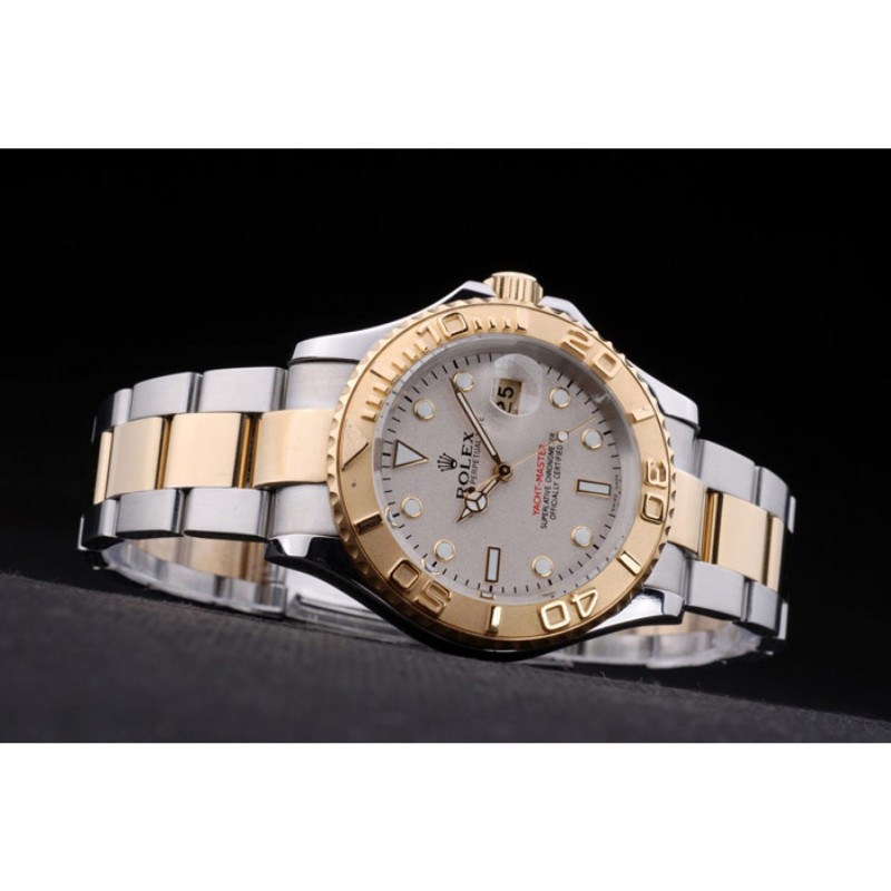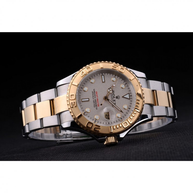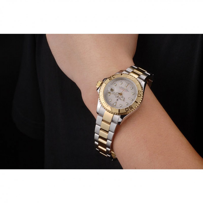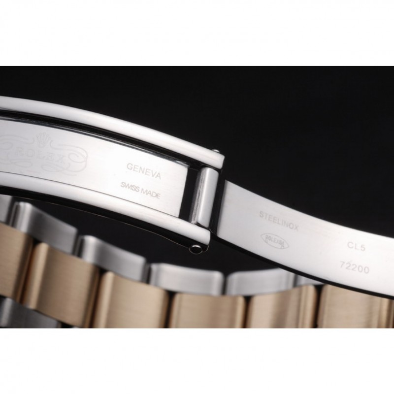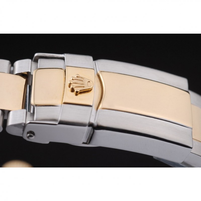 pulsera: Dos tonificado cepillado y de eslabones de acero inoxidable de tono oro pulsera con el grabado Rolex plegable en el corchete con el logotipo de Rolex