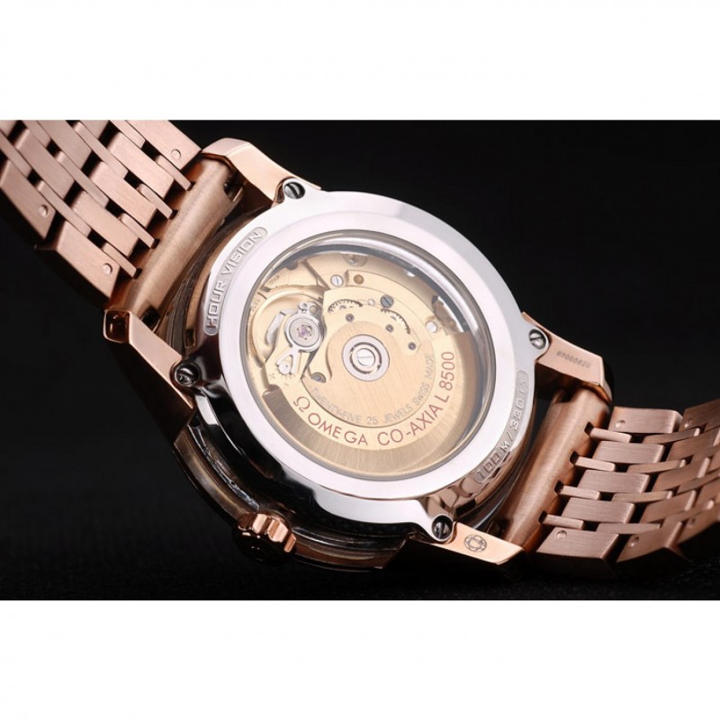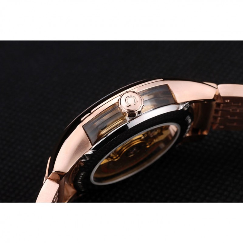 Crown: 18k logo Omega grabado rosa-chapado en oro cutwork corona