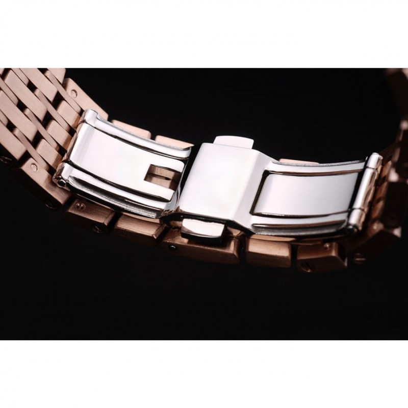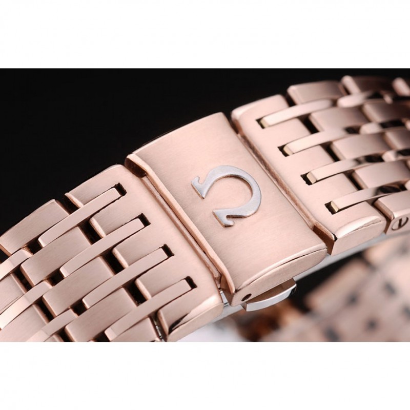 pulsera: 18 Rose-chapado en oro brazalete de acero inoxidable fina enlace con el logotipo de Omega grabado liberación pulsador cierre oculto