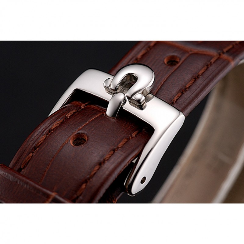 pulsera: correa de piel de cocodrilo marrón Omega y el logotipo en relieve de calor con el logotipo de Omega tallada de acero inoxidable pulido gancho hebilla de cierre