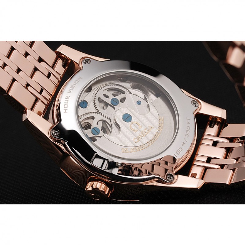 corona: 18k logo Omega tallada oro rosa plateado calado corona