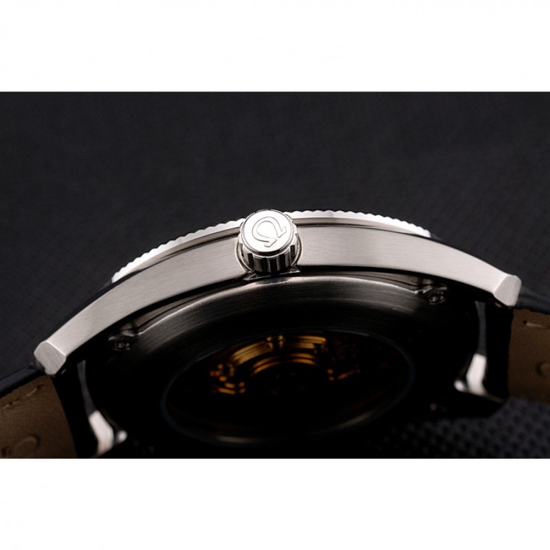 pulsera: logo y el calor Omega en relieve correa de piel de cocodrilo negro con el logotipo inscrito pulida de acero inoxidable gancho del corchete