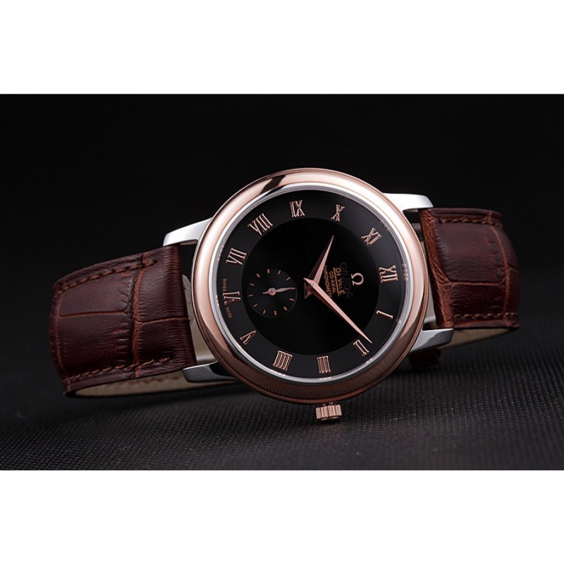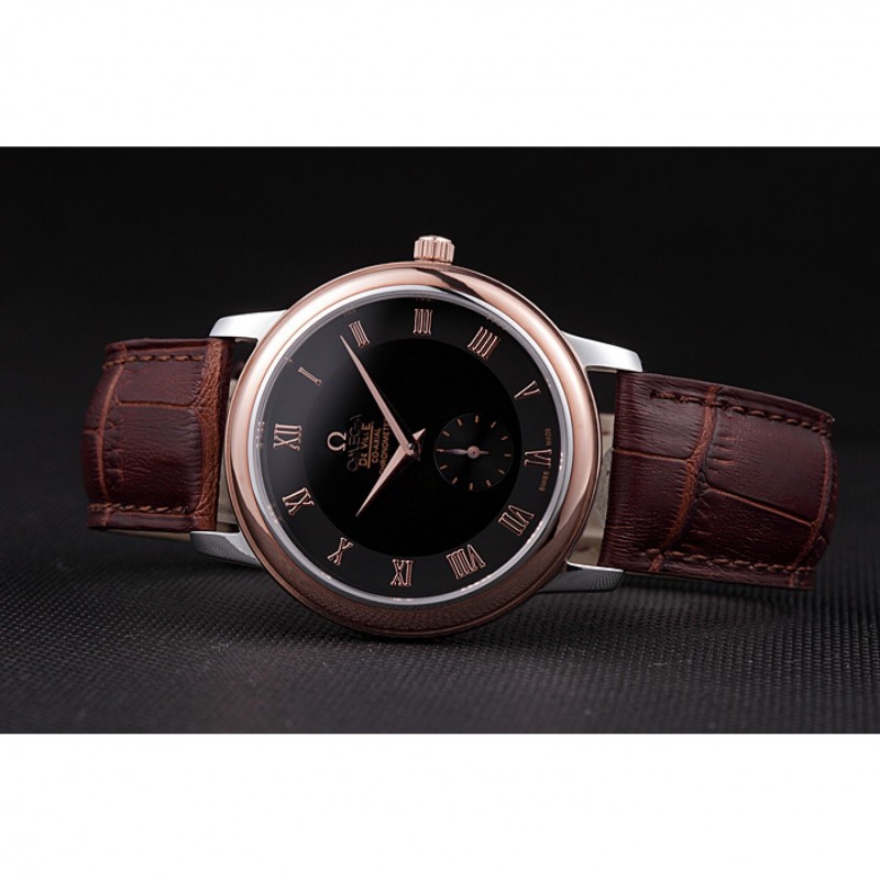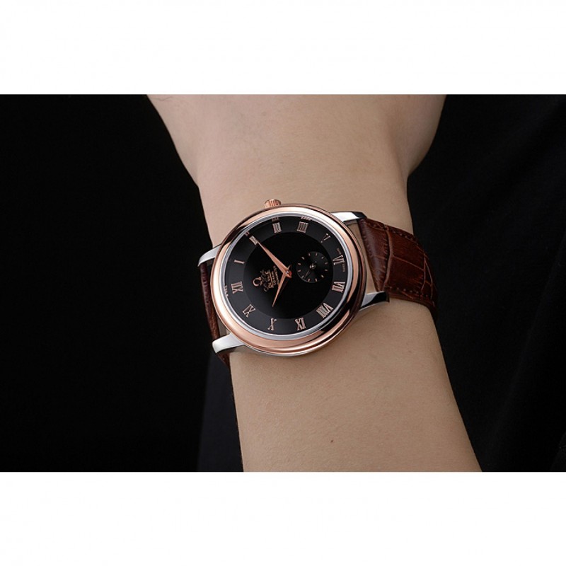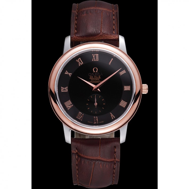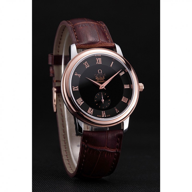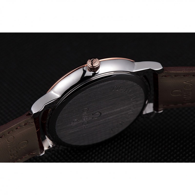 pulsera:piel de cocodrilo marrónlogo y el calor Omega en relieve correa rosa de 18 quilates chapado en oro logotipo de corte gancho hebilla de cierre