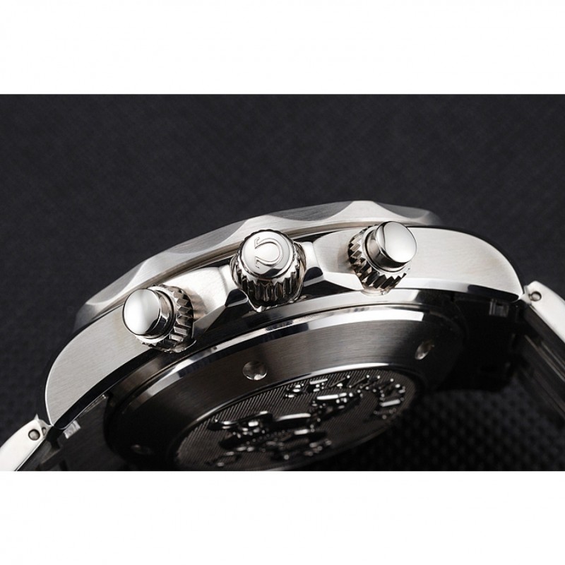 corona: logo Omega tallada pulido corona cutwork de acero inoxidable con una corona de botón en cada lado de ella, más una corona cutwork en el otro lado