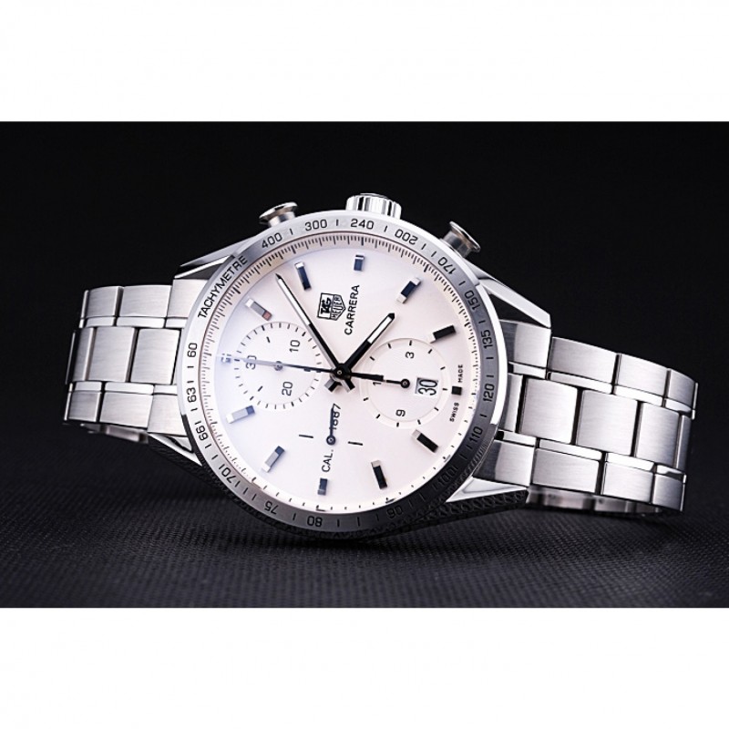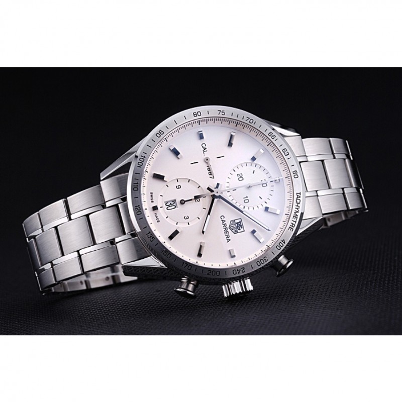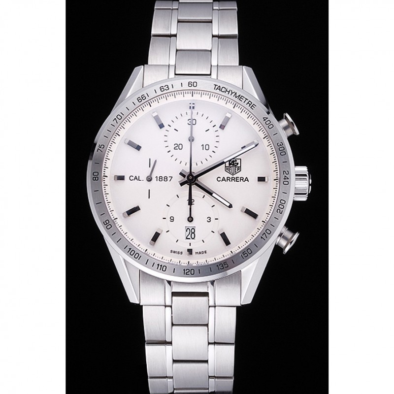 corona: pulido corona calado de acero inoxidable con logo TAG Heuer y dos coronas de pulsador más pequeños a cada lado de la misma