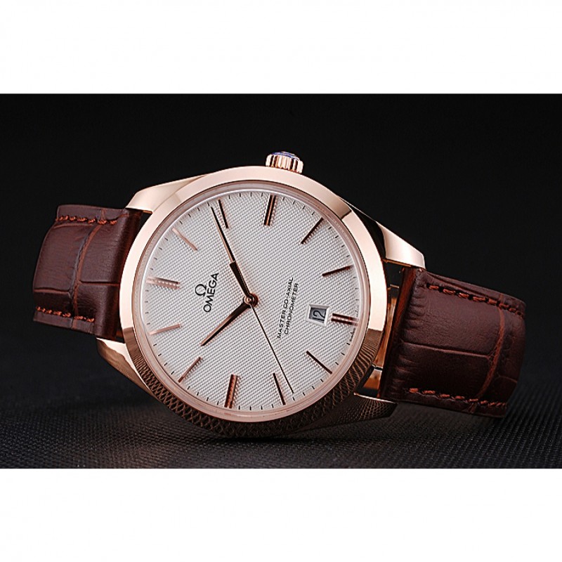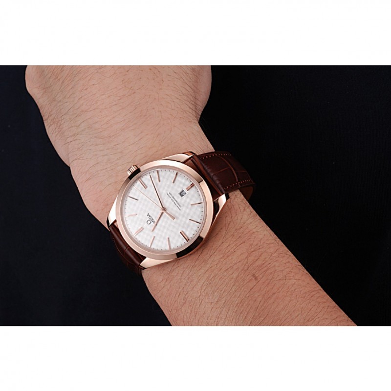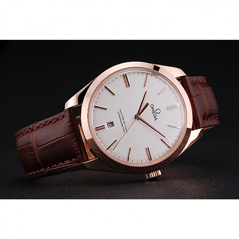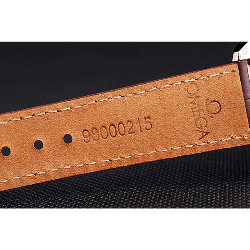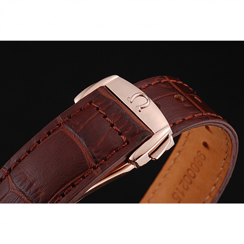 pulsera: logo y el calor Omega correa de piel de cocodrilo marrón en relieve con el logotipo de 18k grabado de oro rosa plateado empuje de liberación del gancho del corchete