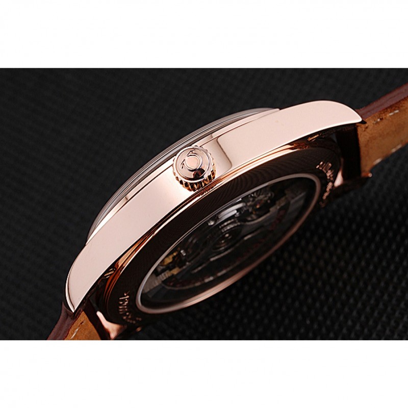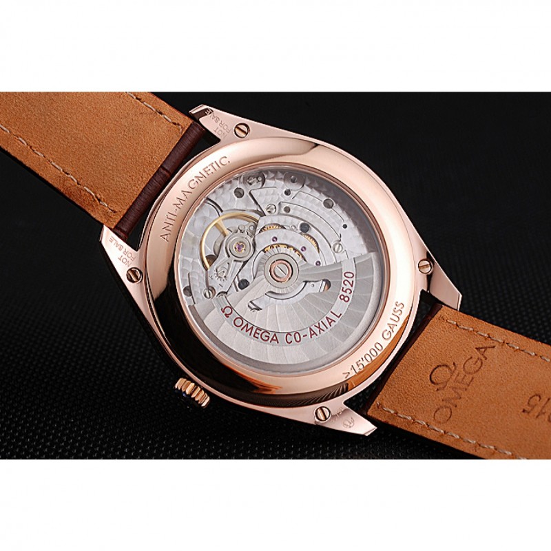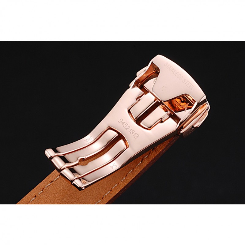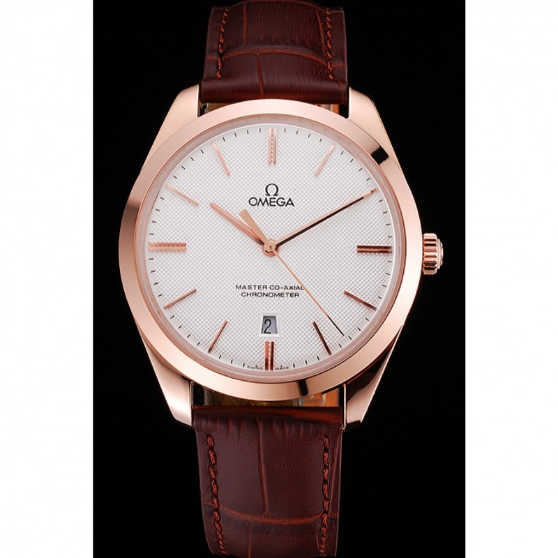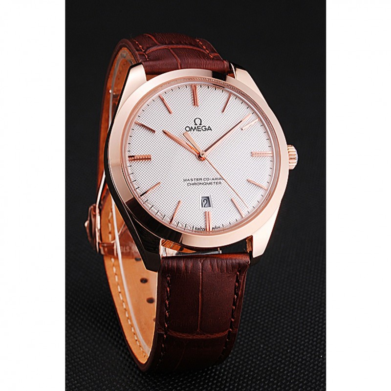 pulsera: logo y el calor Omega correa de piel de cocodrilo marrón en relieve con el logotipo de 18k grabado de oro rosa plateado empuje de liberación del gancho del corchete