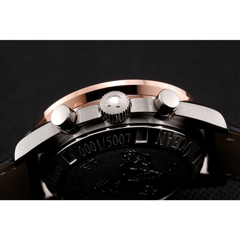 Corona: logo Omega grabado pulido corona cutwork de acero inoxidable con una corona de botón en cada lado de ella