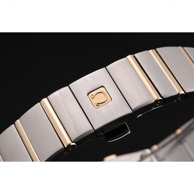 pulsera: 18k oro amarillo plateado y cepillado de acero inoxidable brazalete de eslabones de oro amarillo plateado cierre oculto Omega liberación logotipo de empuje