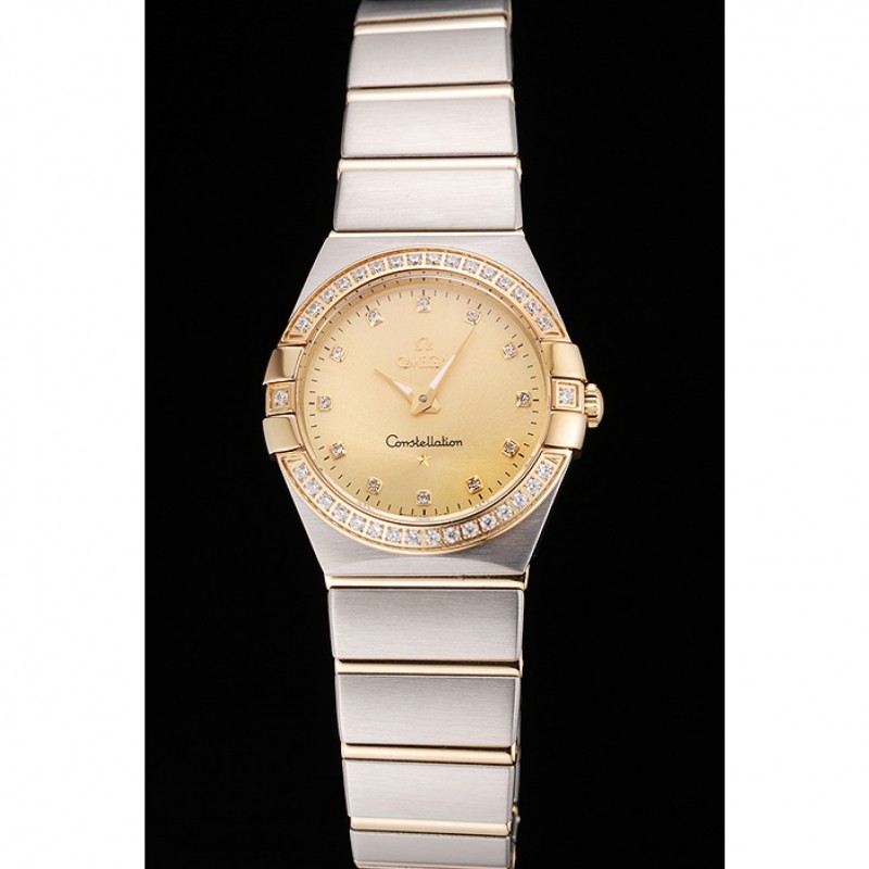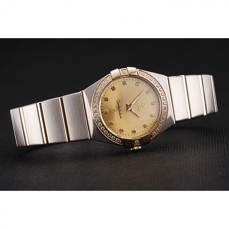 corona: 18k oro amarillo plateado corona cutwork con logo Omega