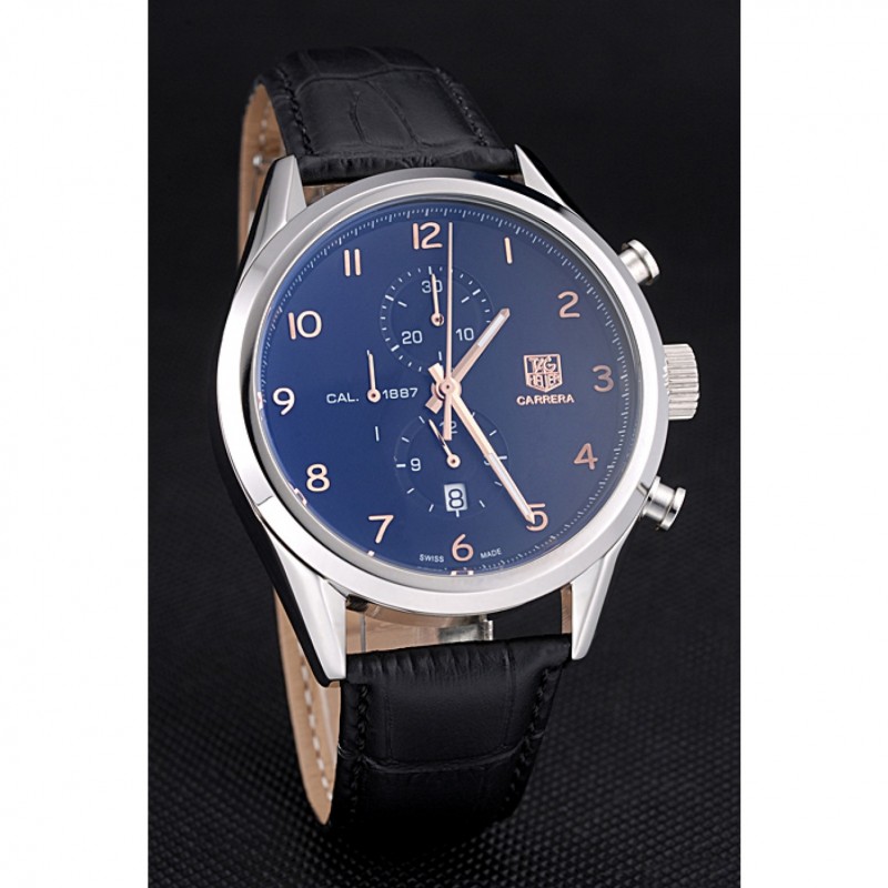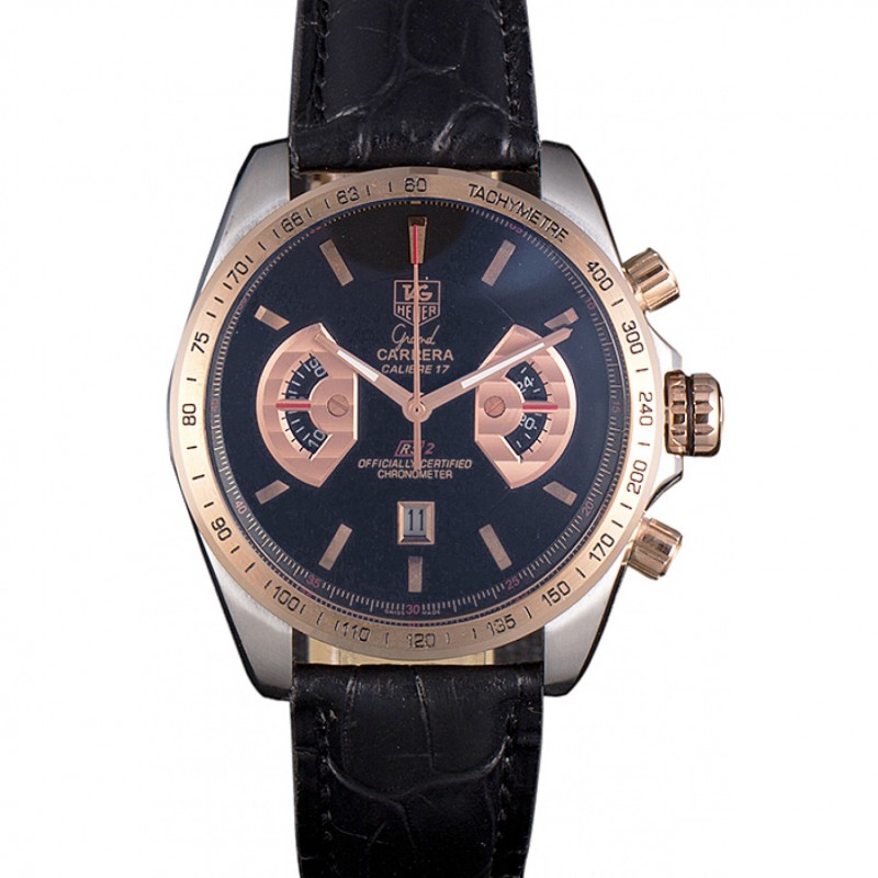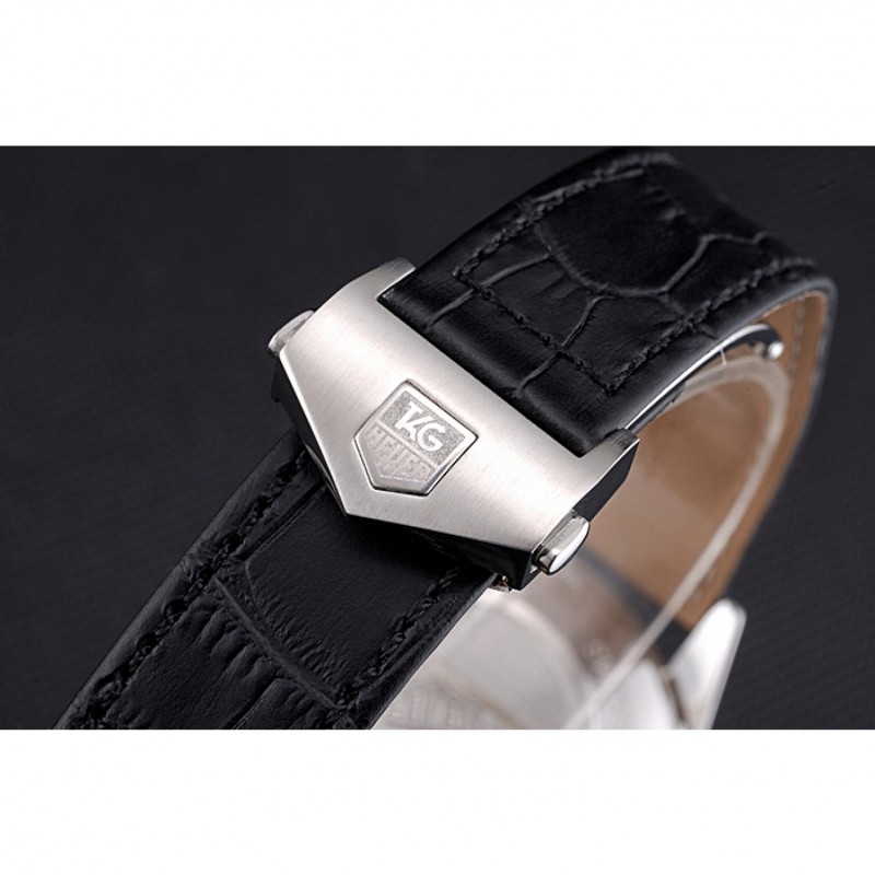 pulsera:de acero inoxidable de liberación empujecorrea de piel de cocodrilo negro etiqueta de calor Heuer en relieve con Tag Heuer grabado cepillado plegable en el corchete