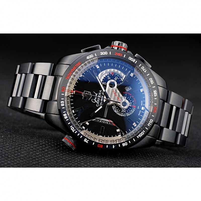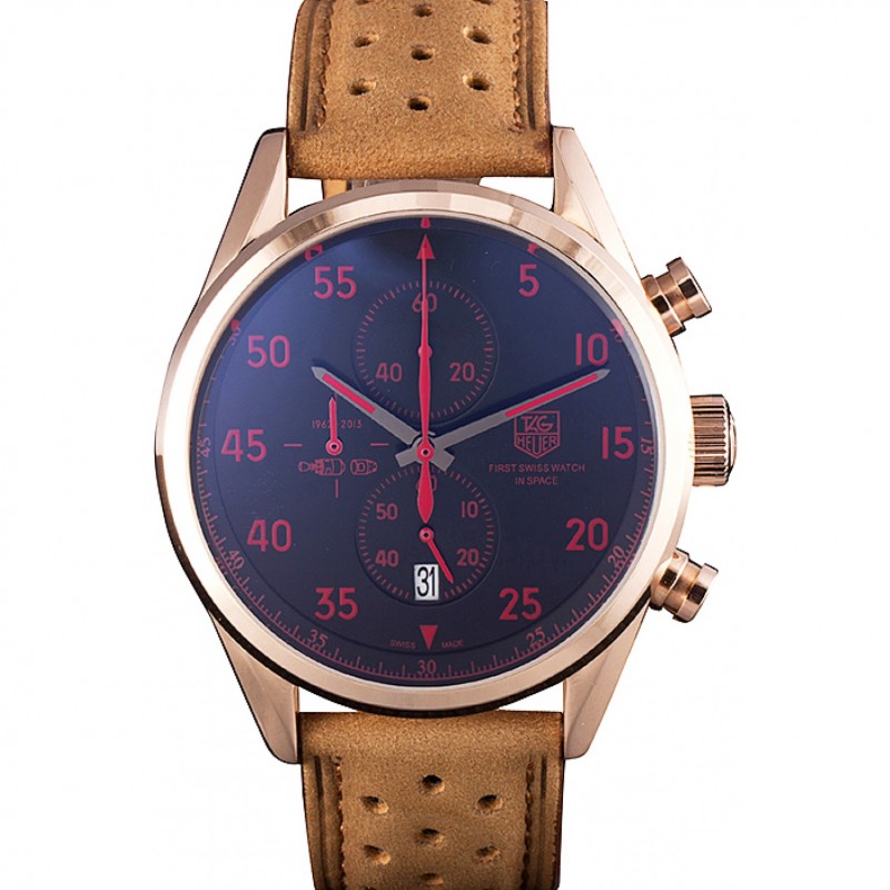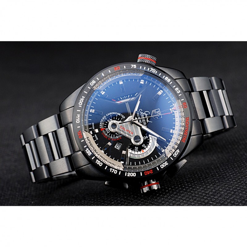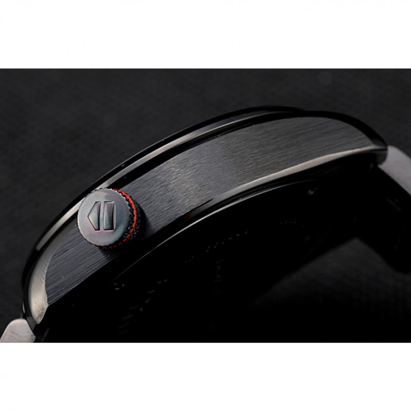 corona: chapado-Ion corona calado con la etiqueta logotipo Heuer y el ajuste de la banda roja y dos largas coronas de pulsador a cada lado de ella, más una corona de ion-plateado logotipo grabado con la banda de la franja roja en la esquina superior opuesta