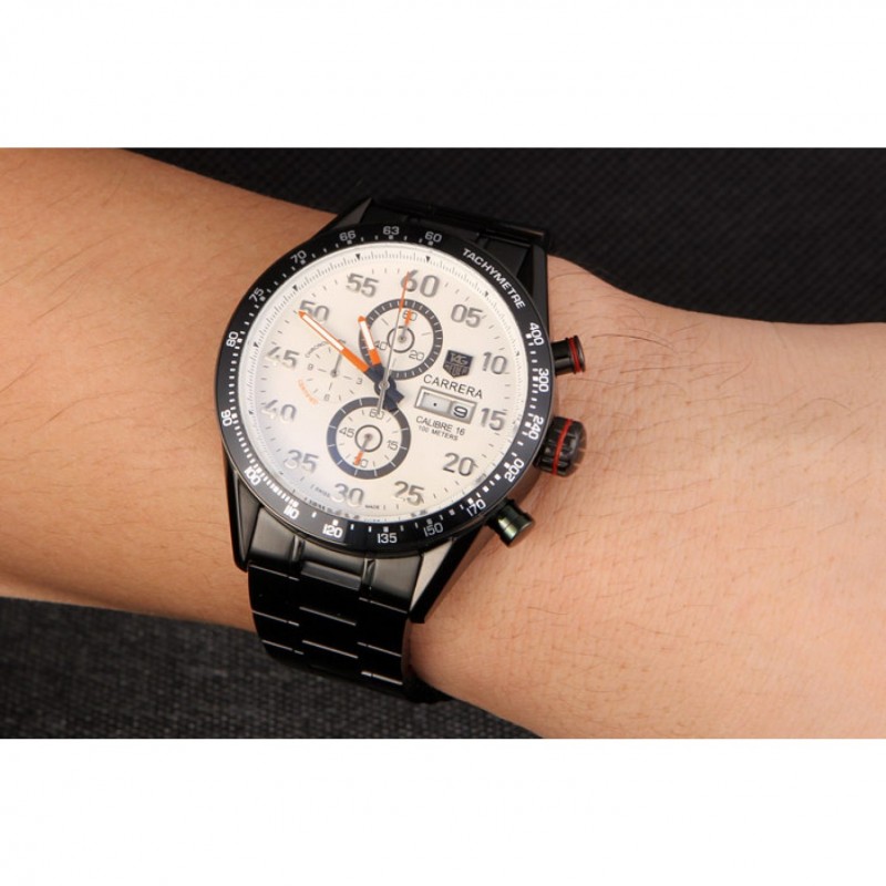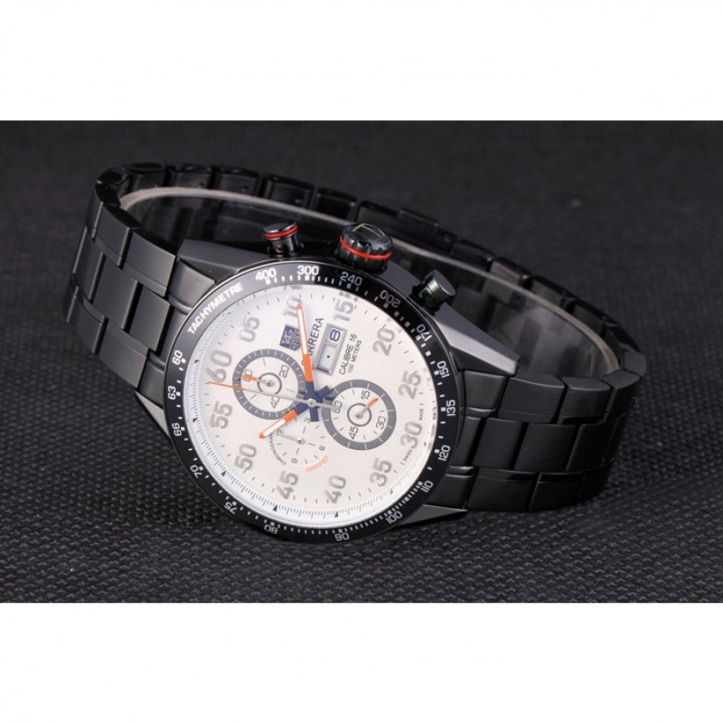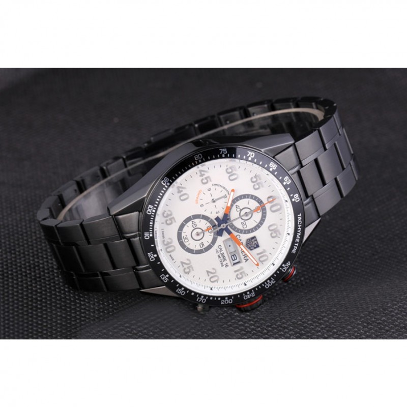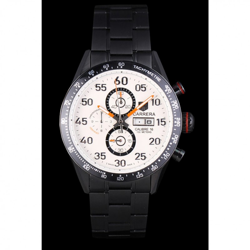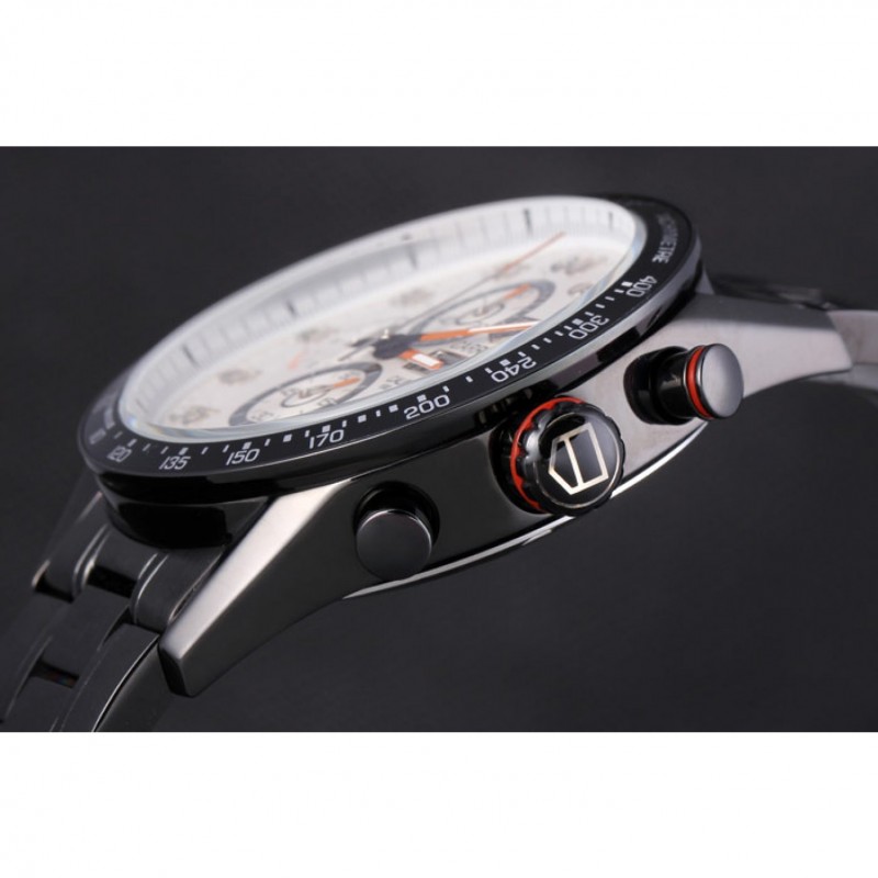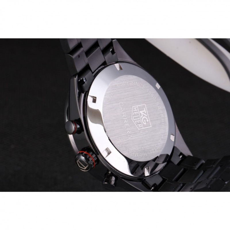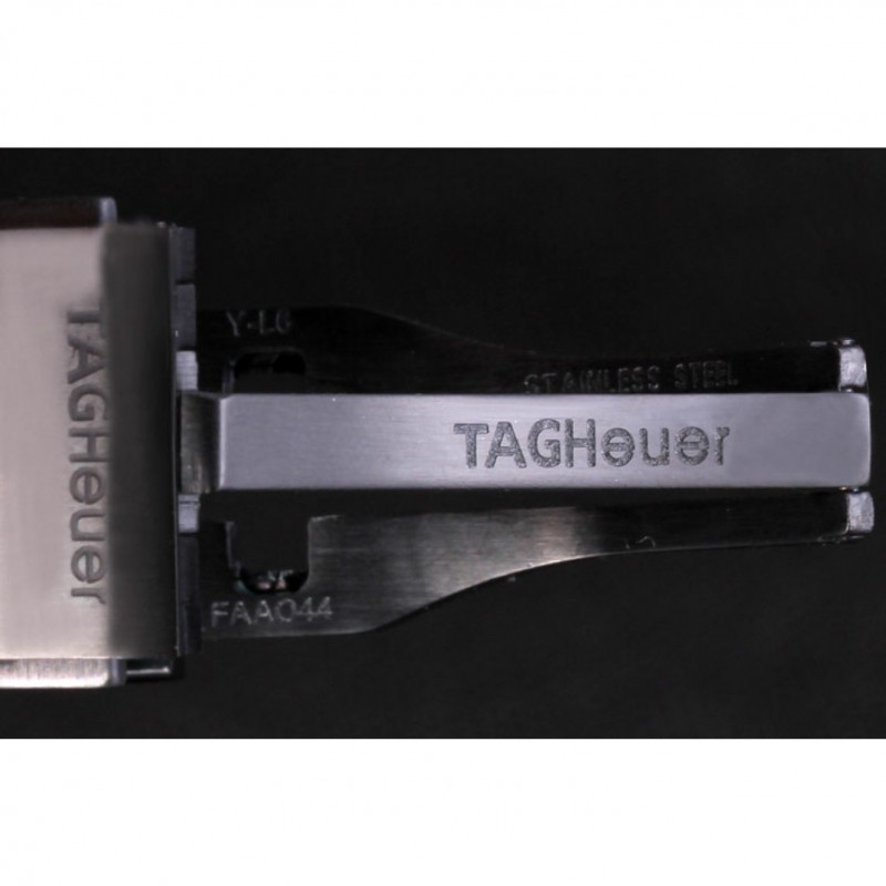 Crown: Tag logo Heuer grabado negro de cerámica corona cutwork con una ronda corona botón pulsador en cada lado de ella