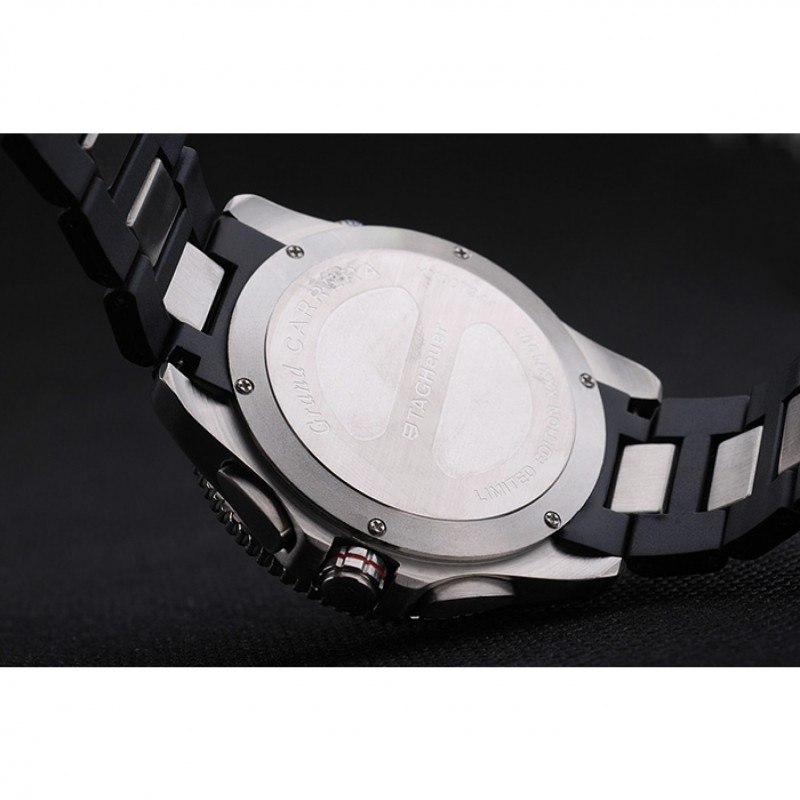 Volver: de acero inoxidable atornillada caso de vuelta con la etiqueta grabados Heuer