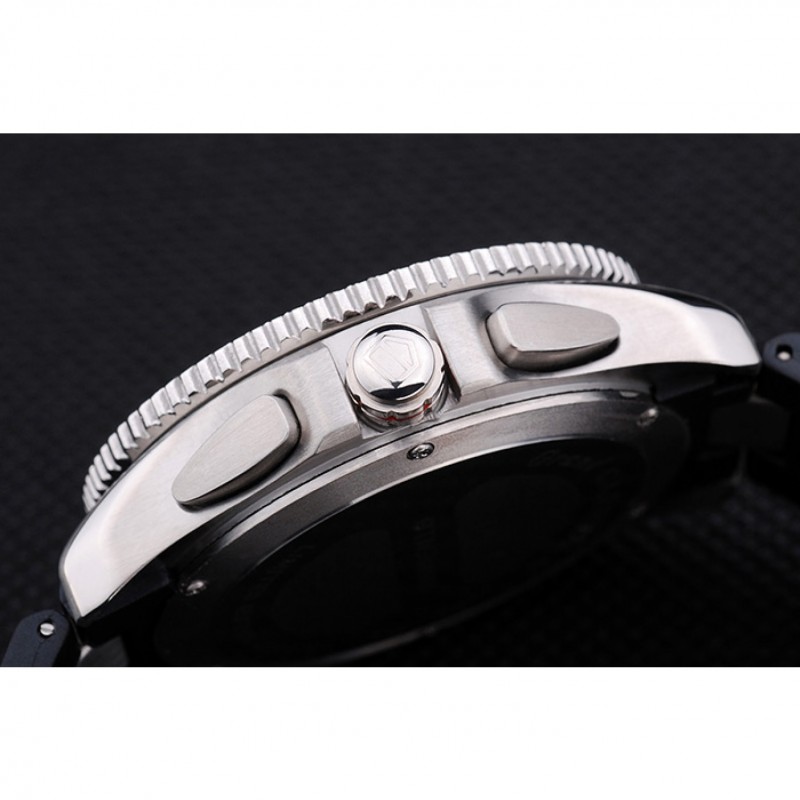 corona: pulido corona calado de acero inoxidable con logo TAG Heuer más dos coronas adicionales a cada lado y uno en la esquina superior opuesta