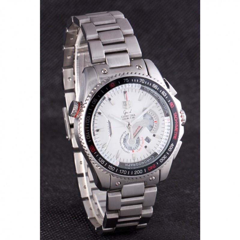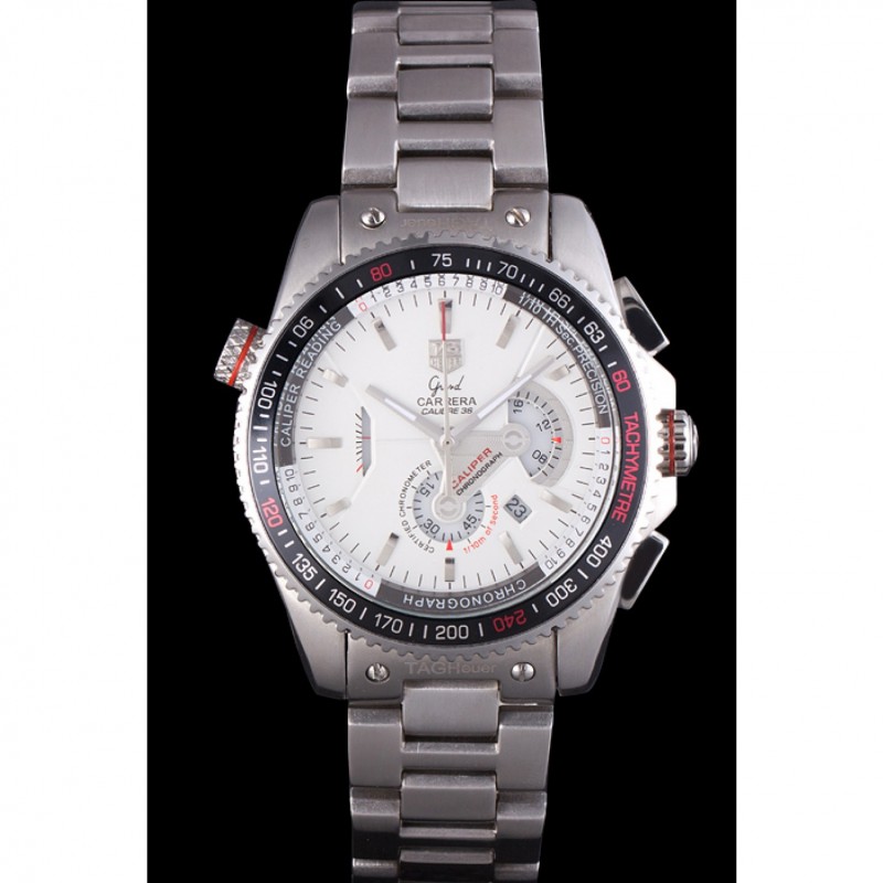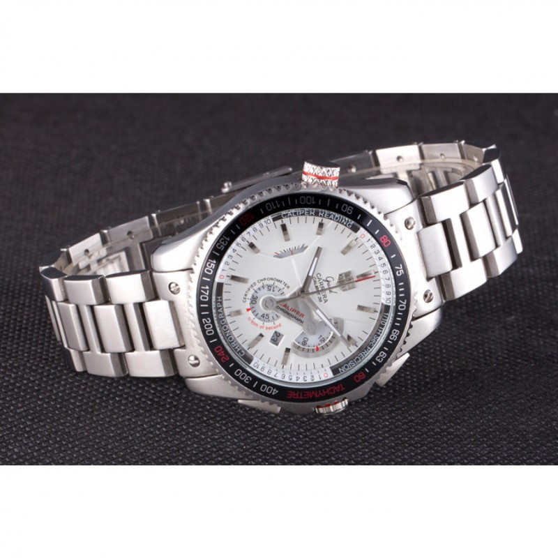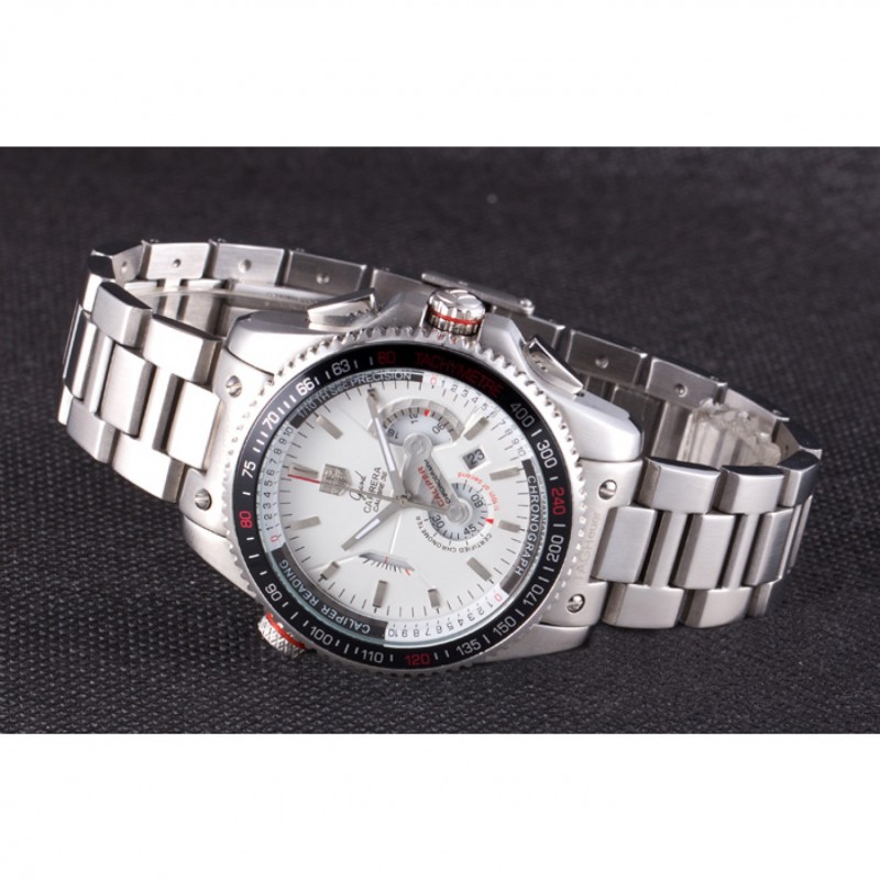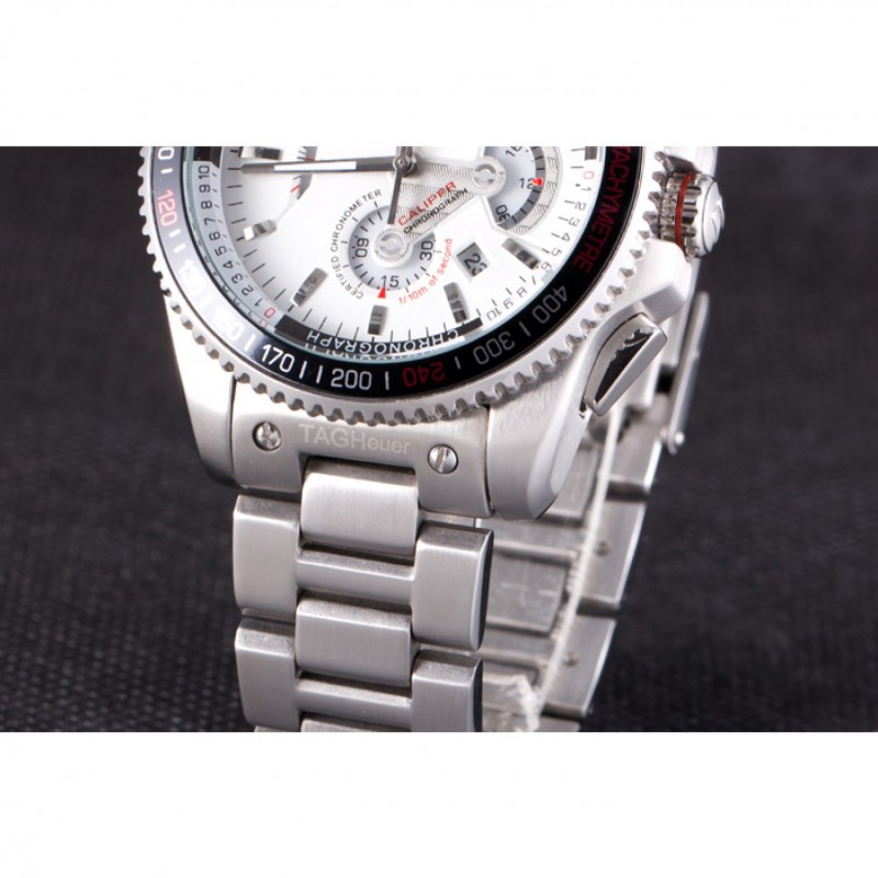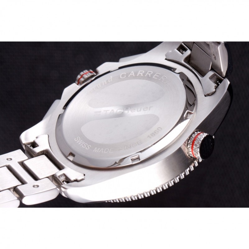corona: pulido corona calado de acero inoxidable con logo TAG Heuer más dos coronas adicionales a cada lado y uno en la esquina superior opuesta