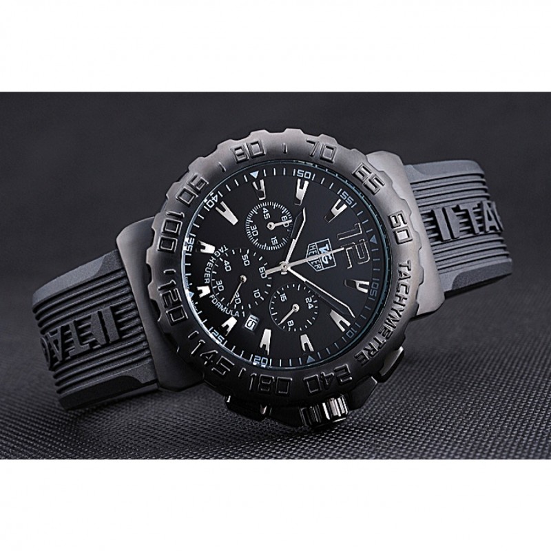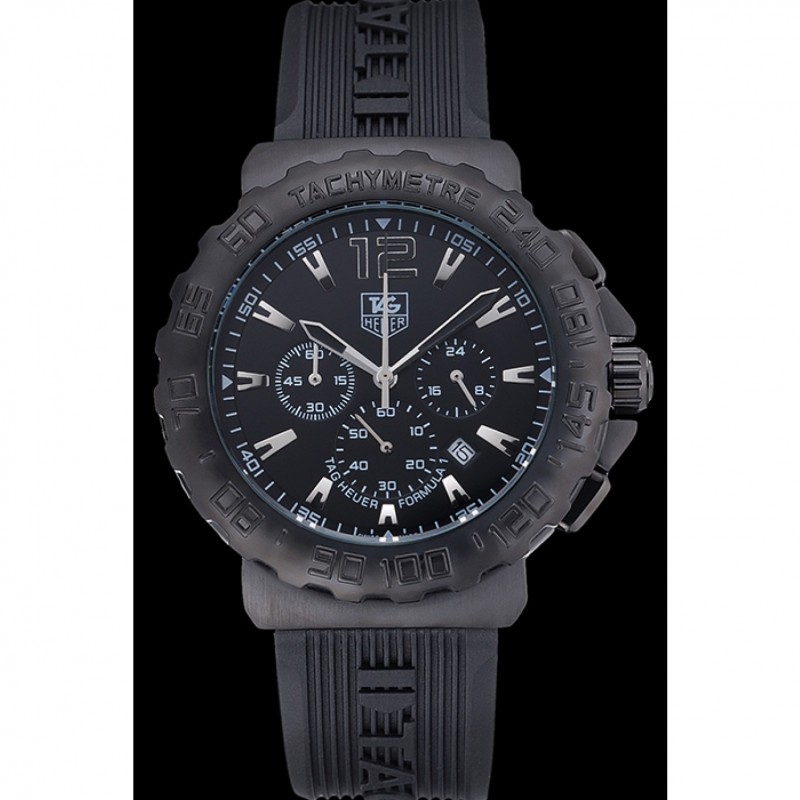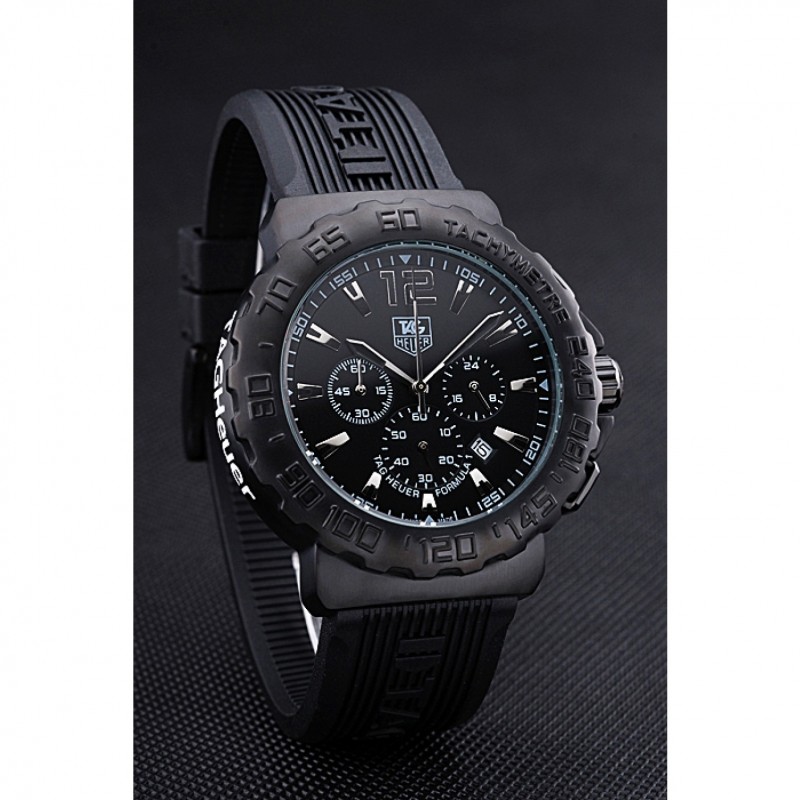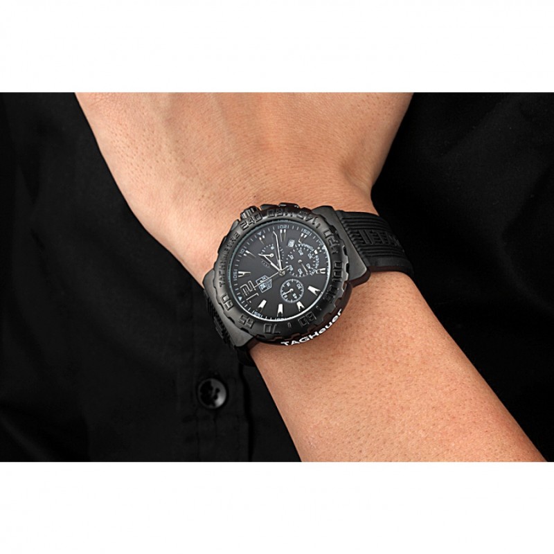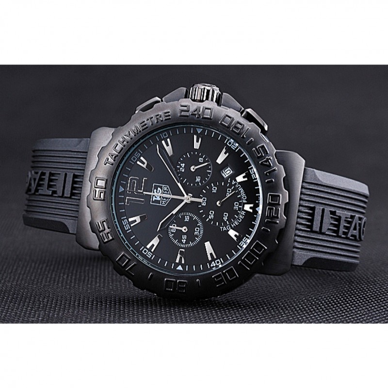 pulsera: correa de caucho Negro con Tag Heuer grabado de ion-plateado gancho hebilla de cierre