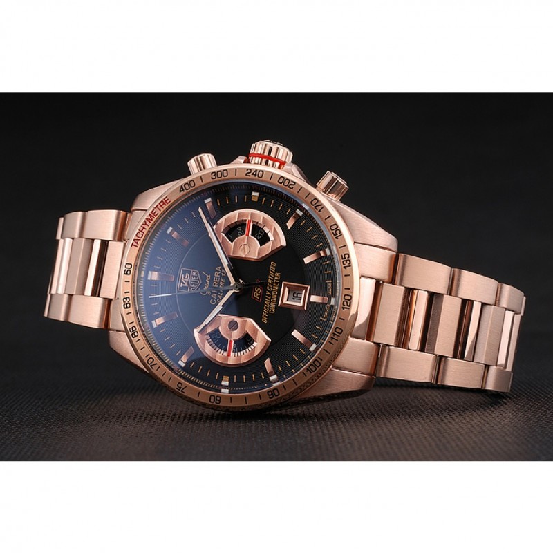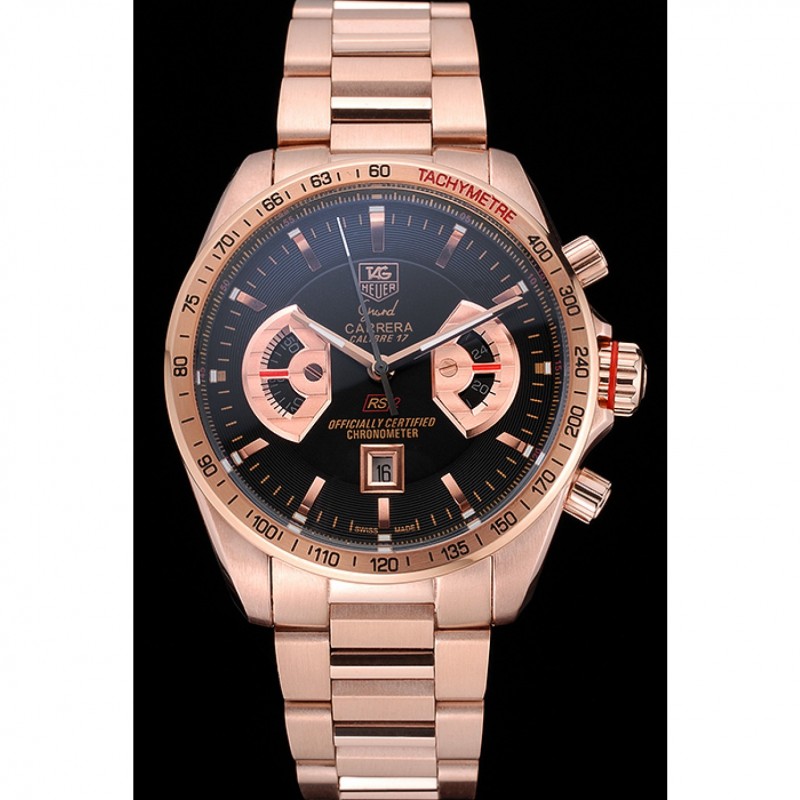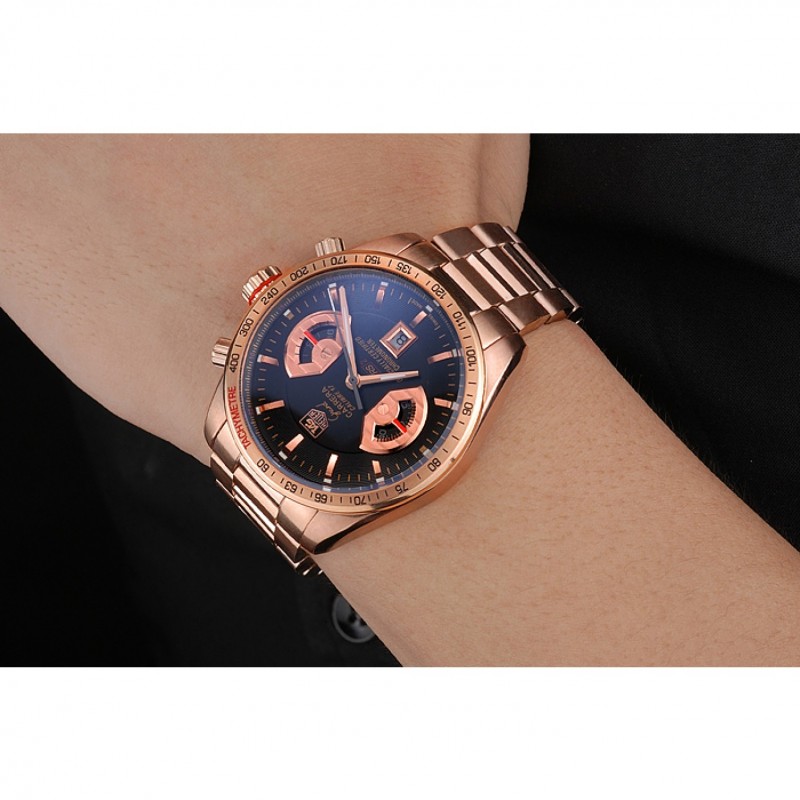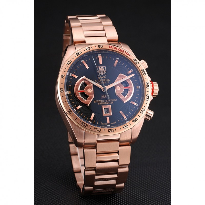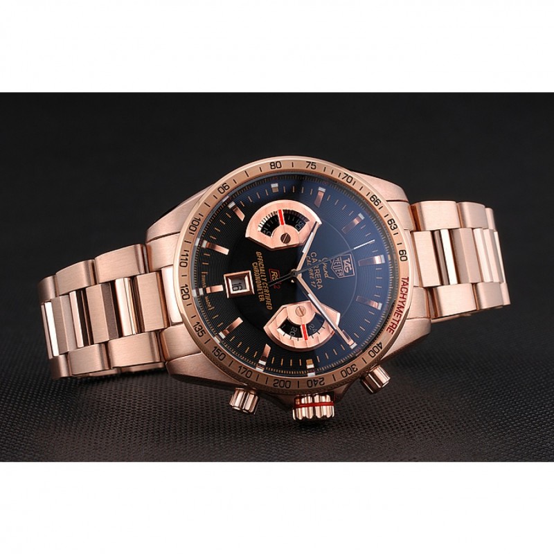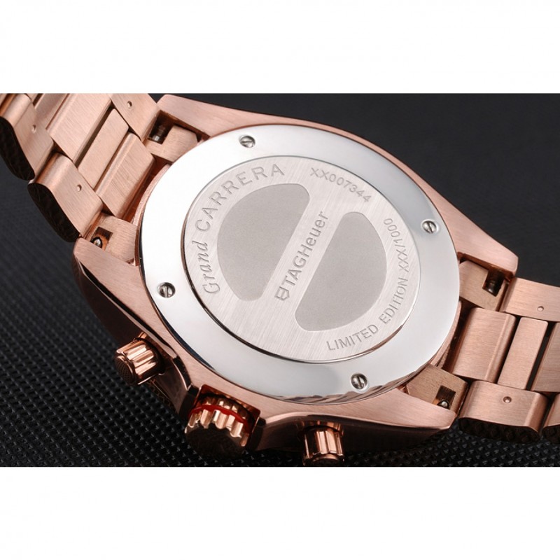 Volver: 18k Rose- chapado en oro atornillado atrás con Tag Heuer Grand Carrera grabado