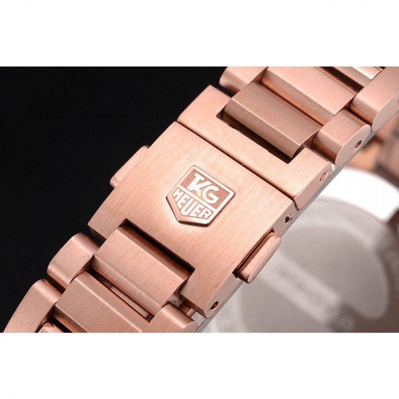 corona: 18k logo TAG Heuer grabado oro rosa plateado corona calado con una corona calado más pequeño en cada lado de ella