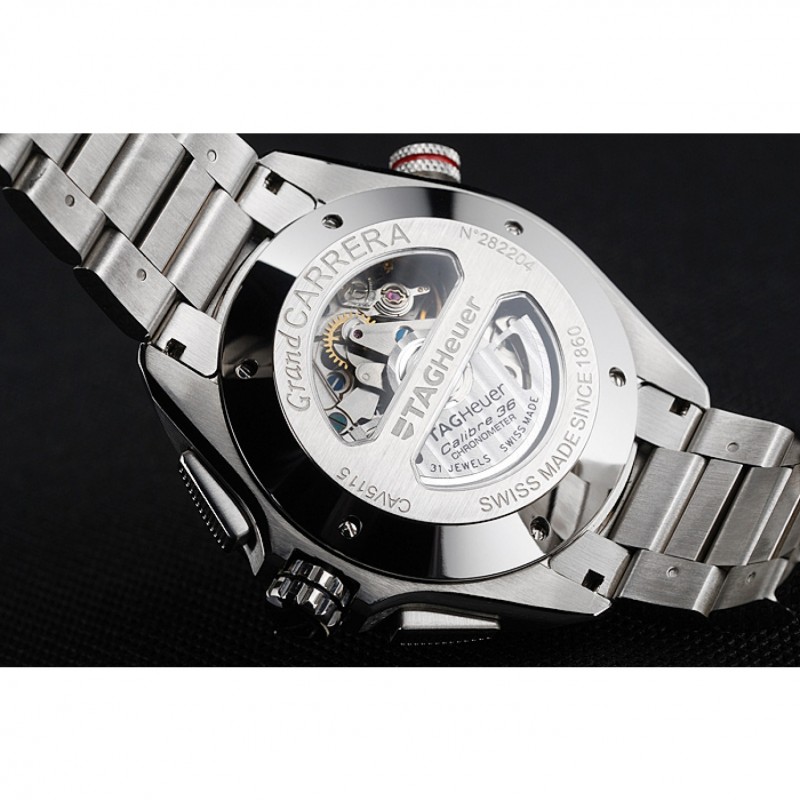 Volver: acero inoxidable empujón en la espalda con la mecánica transparentes que revelan centro y la etiqueta grabados Heuer